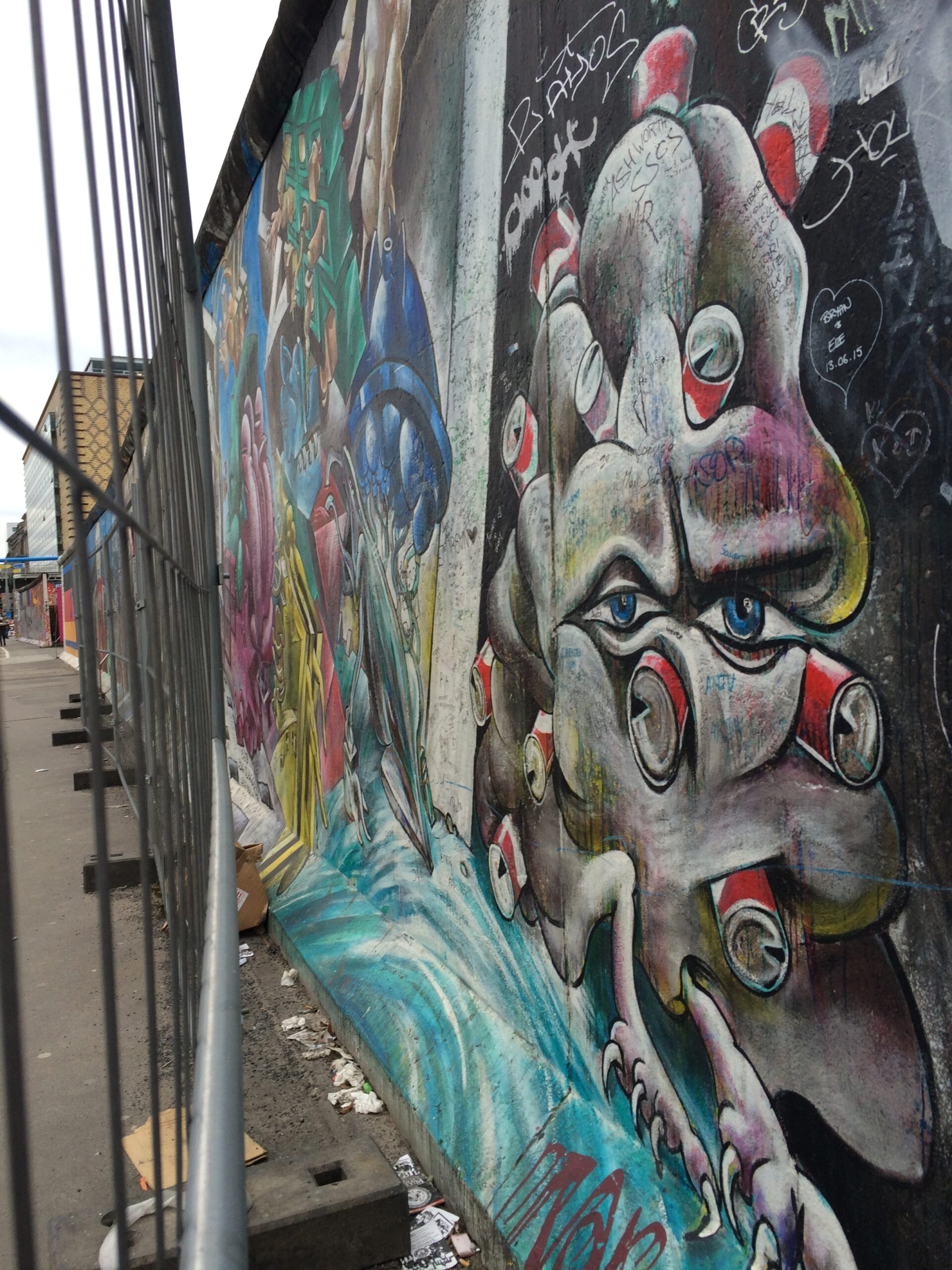 Fragments of the Wall stand throughout Berlin as displays, but my favorite display was the East Gallery. This 1.3 km section of wall consists of paintings by famous artists from all over the world. Naturally, the murals have been defaced by local graffiti “artists.” No visit to Berlin is complete without strolling along the river and the East Gallery!