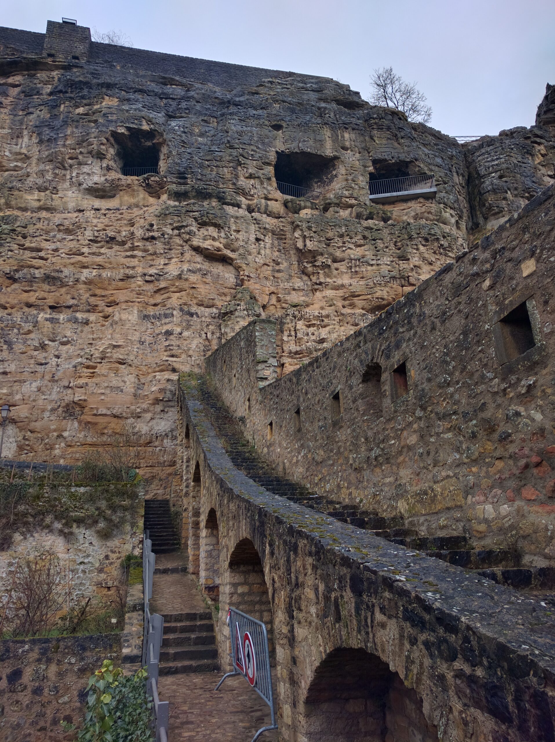 In 963, the count built a castle over a bock, a raised mass of land with only one steep side. This type of landscape offered a natural fortification for the city, and it was a gorgeous fortification indeed. Remnants of the castle and fortification laid scattered throughout the city, and both perspectives from the top-down and down-up offered picturesque views. A detailed sketch of the ancient city: