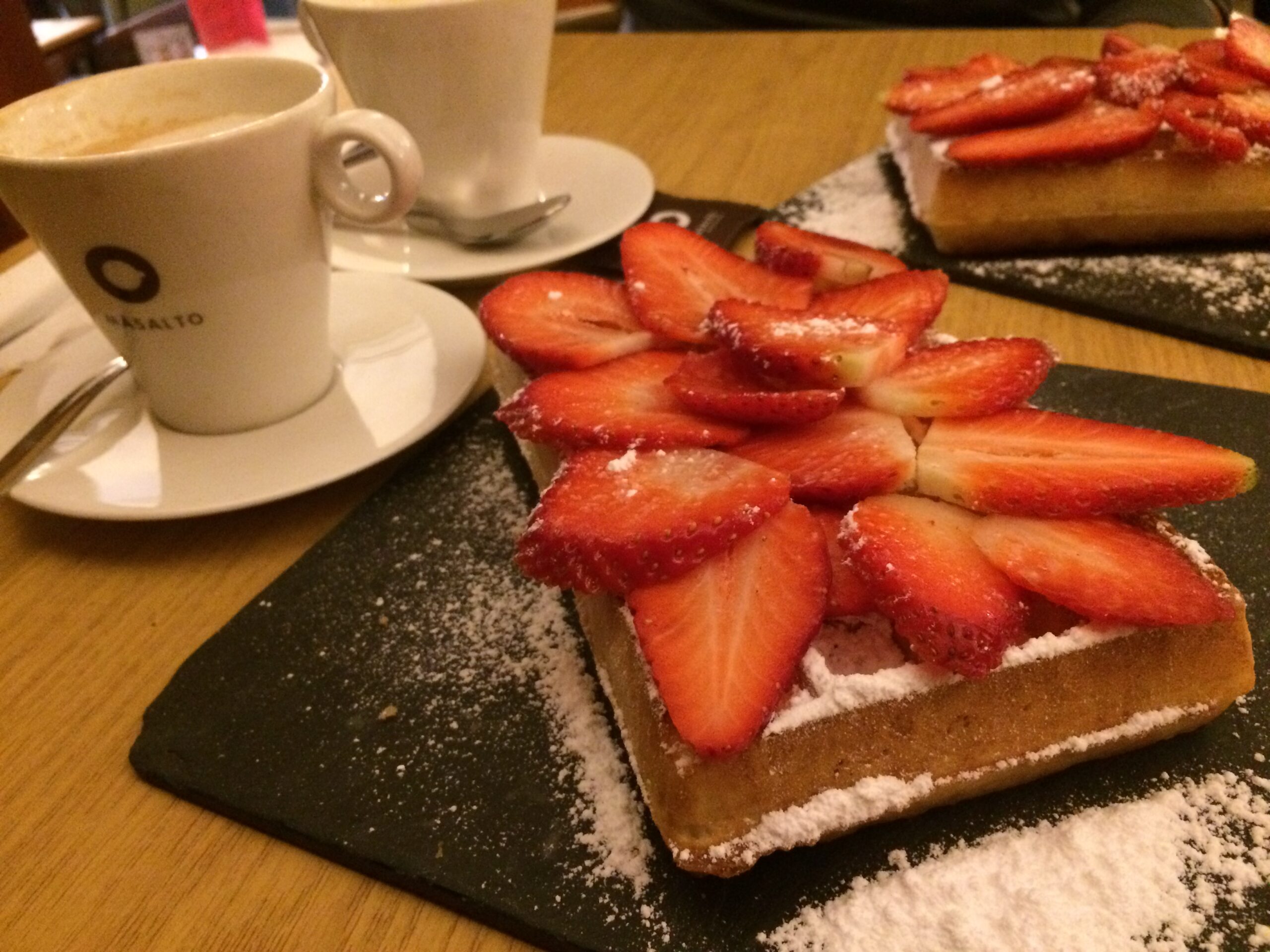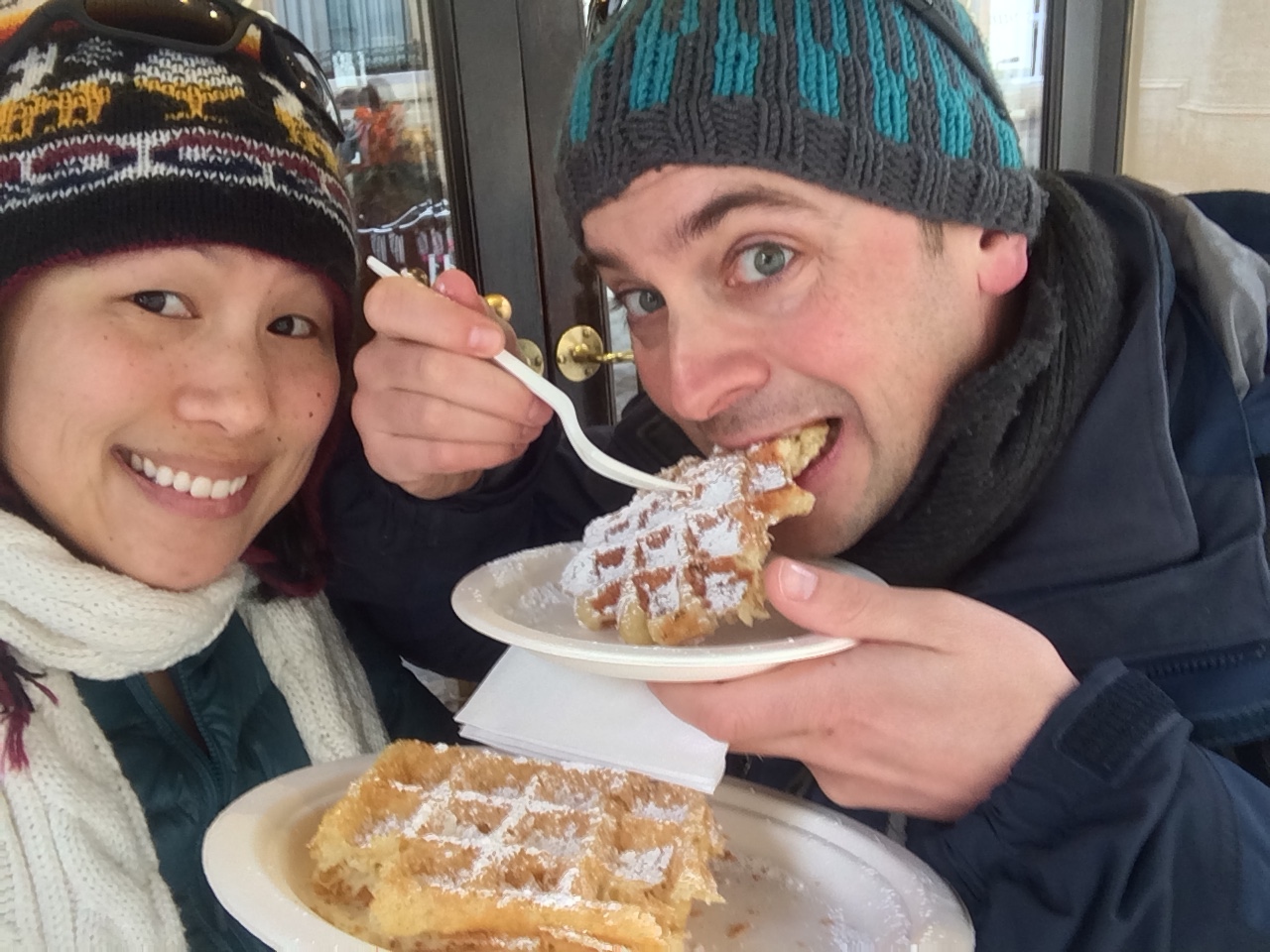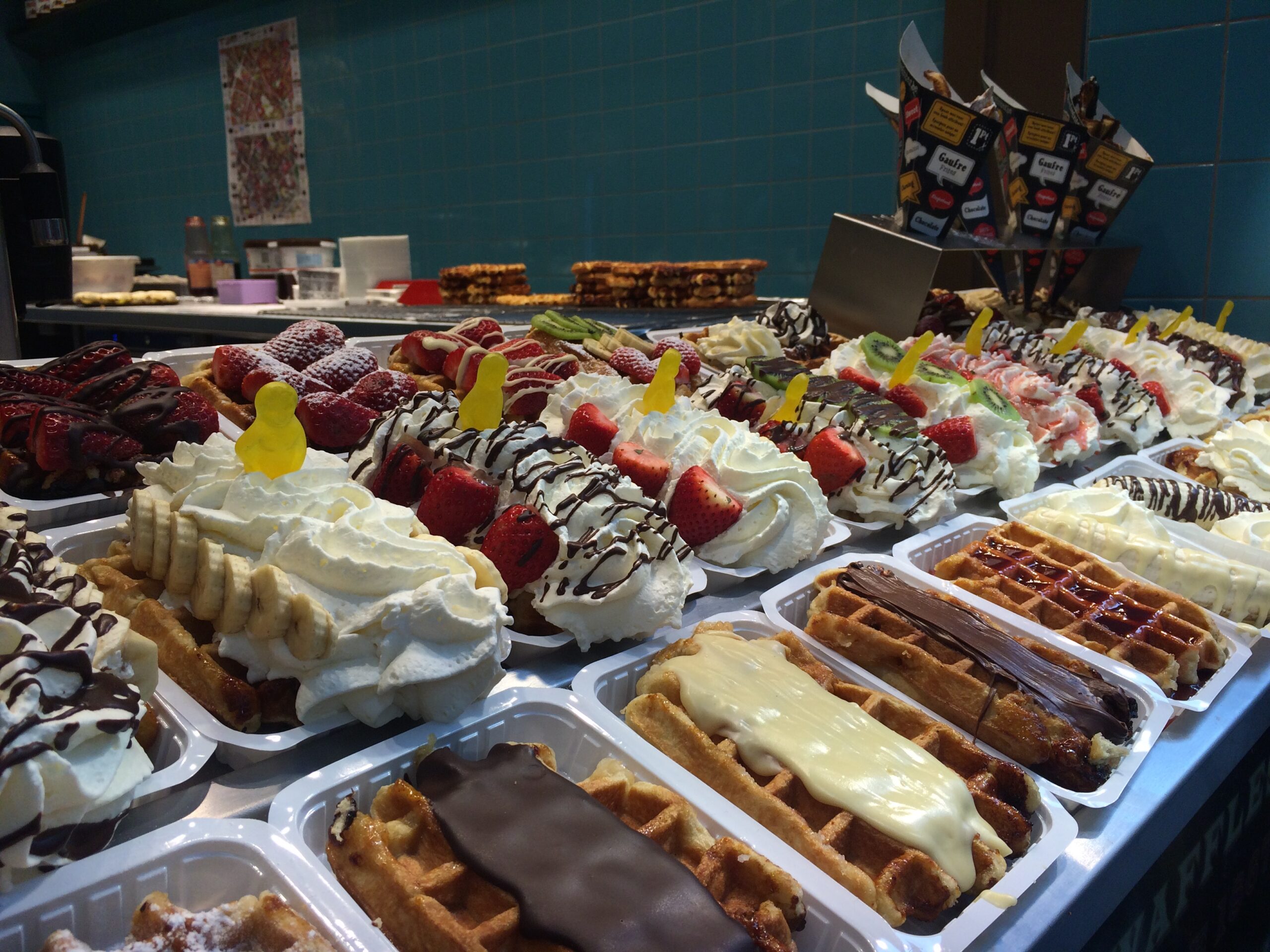 Down the street from the Grand Place were waffle shops after waffle shops, with waffles starting at only €1! We eagerly loaded up on waffles.