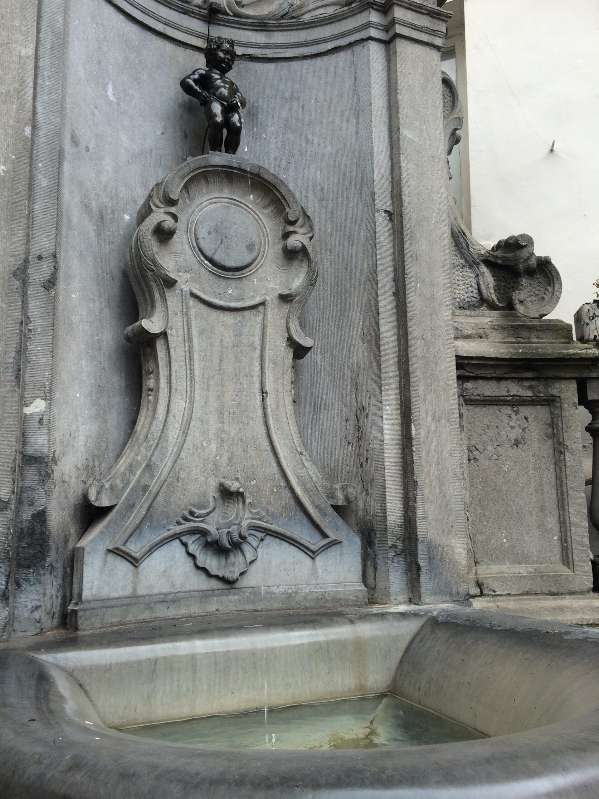 Mannekin Pis was the first pissing statue to be erected. It is said that he represents the Belgian rebelliousness nature and history. There is apparently an entire wardrobe of over 800 costumes for this little statue, which is held on display at a museum. He was naked when we took his picture.