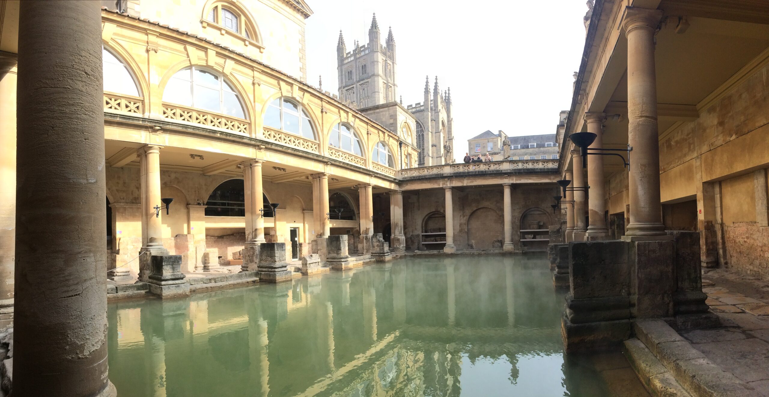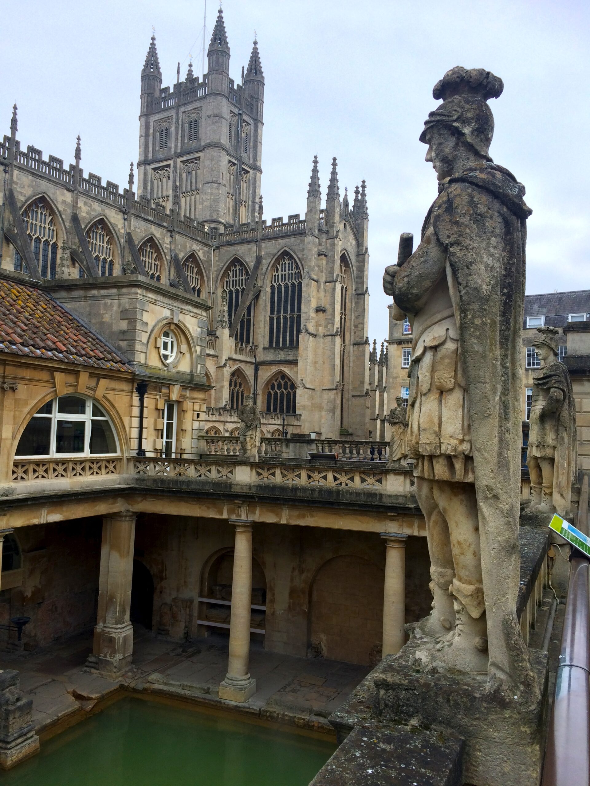 Why is there a popular little city in southwest England called Bath? Because of the natural hot baths the Romans built in A.D. 60! Ancient Roman baths have been built all throughout Europe during the Roman empire, but the baths in Bath, England are the most preserved Roman baths in the world. At first we were a bit hesitant to each pay the admission fee of £15, but not long after we entered we quickly learned that what we entered was more than just Roman baths. It was a museum built upon the original foundation of the baths, explaining its construction, showcasing the hundreds of artifacts found in and around the baths, and depicting what they once were. The baths had once been all indoors with monumentally tall ceilings, and now most of them remain as crumbled pools. We were the first visitors to walk through the entrance when they opened at 9am and we enjoyed the entire Roman baths to ourselves before the masses arrived.