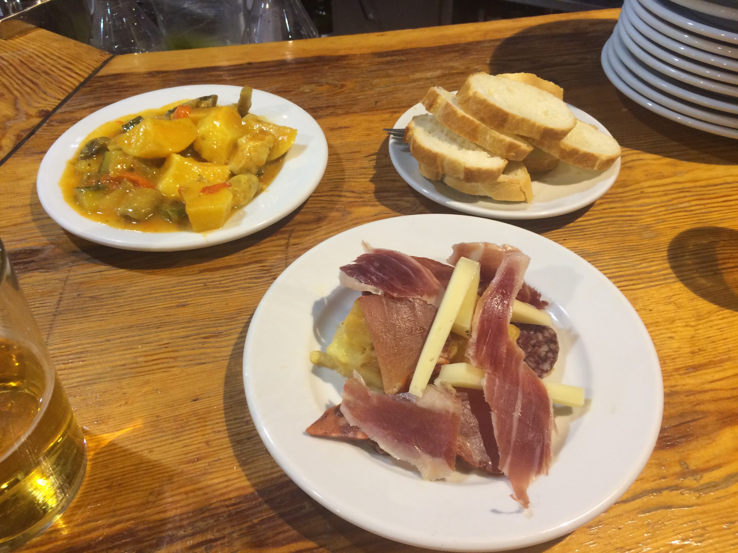Aside from plazas and the few ornate buildings, what Madrid truly had going for itself was its food…and by food I mean tapas.  Free tapas. Lots of free tapas.  Thanks to this site we basically filled up our tummies at the cost of cheap beer/cider.