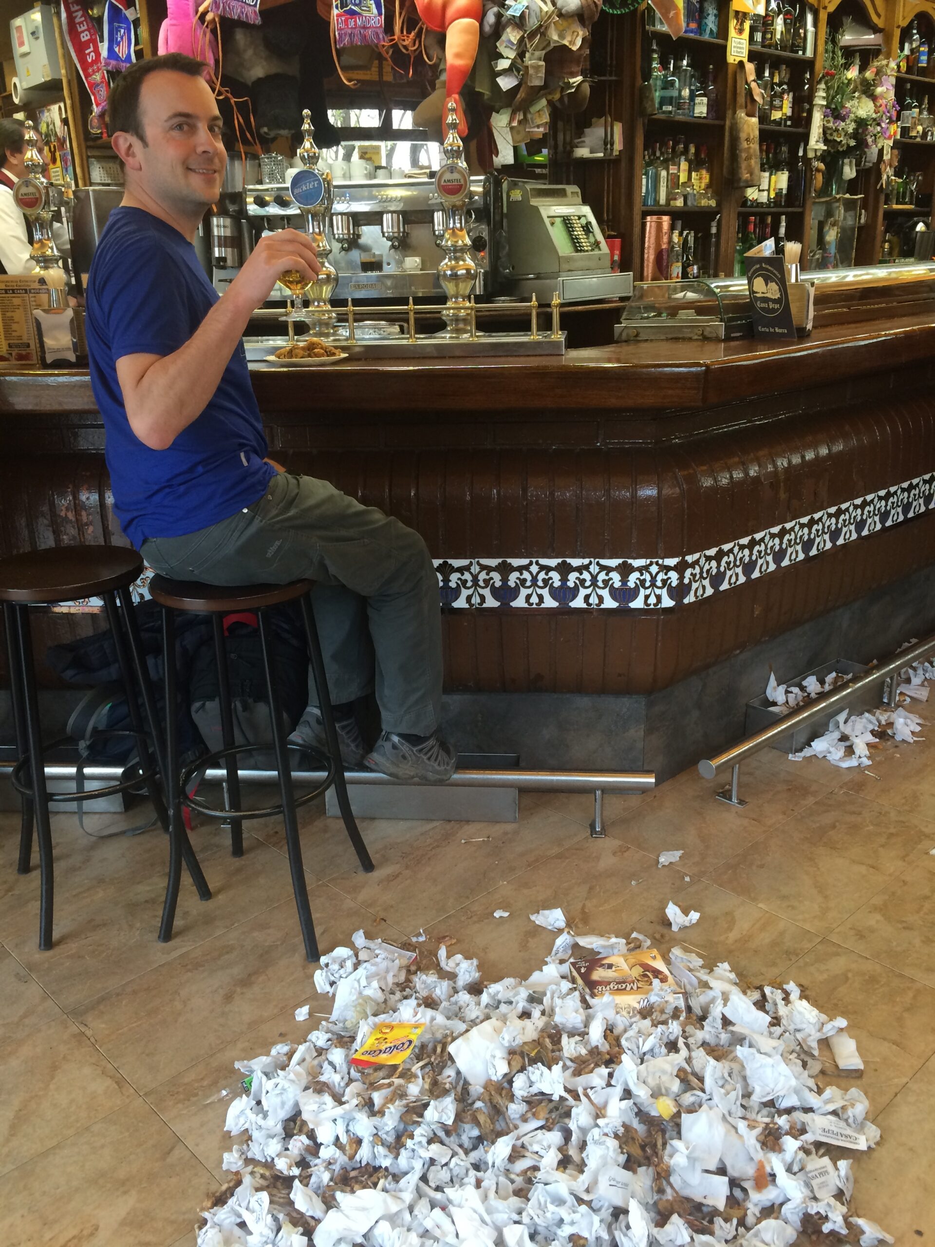 A special tapas bar slightly out of Madrid, Casa Pepe, is known for its delicious dry-fried chicken wings.  And it’s not just because their wings are tasty, but because people throw their chicken bones and napkins onto the ground.  The filthy floor alone made our trip out there worth it.  (But €6.30 for 3 plates of wings and 4 drinks was worth it too.)