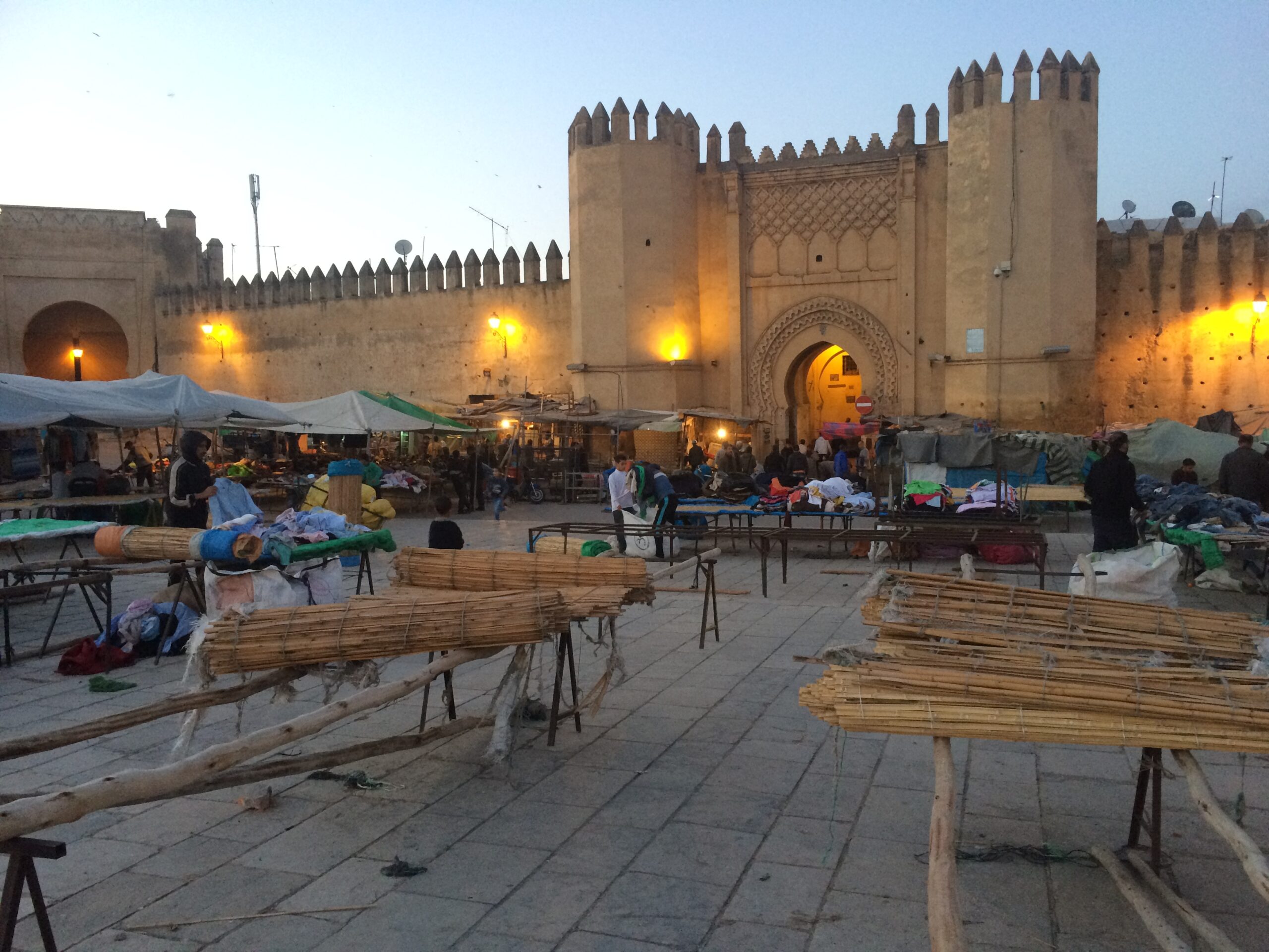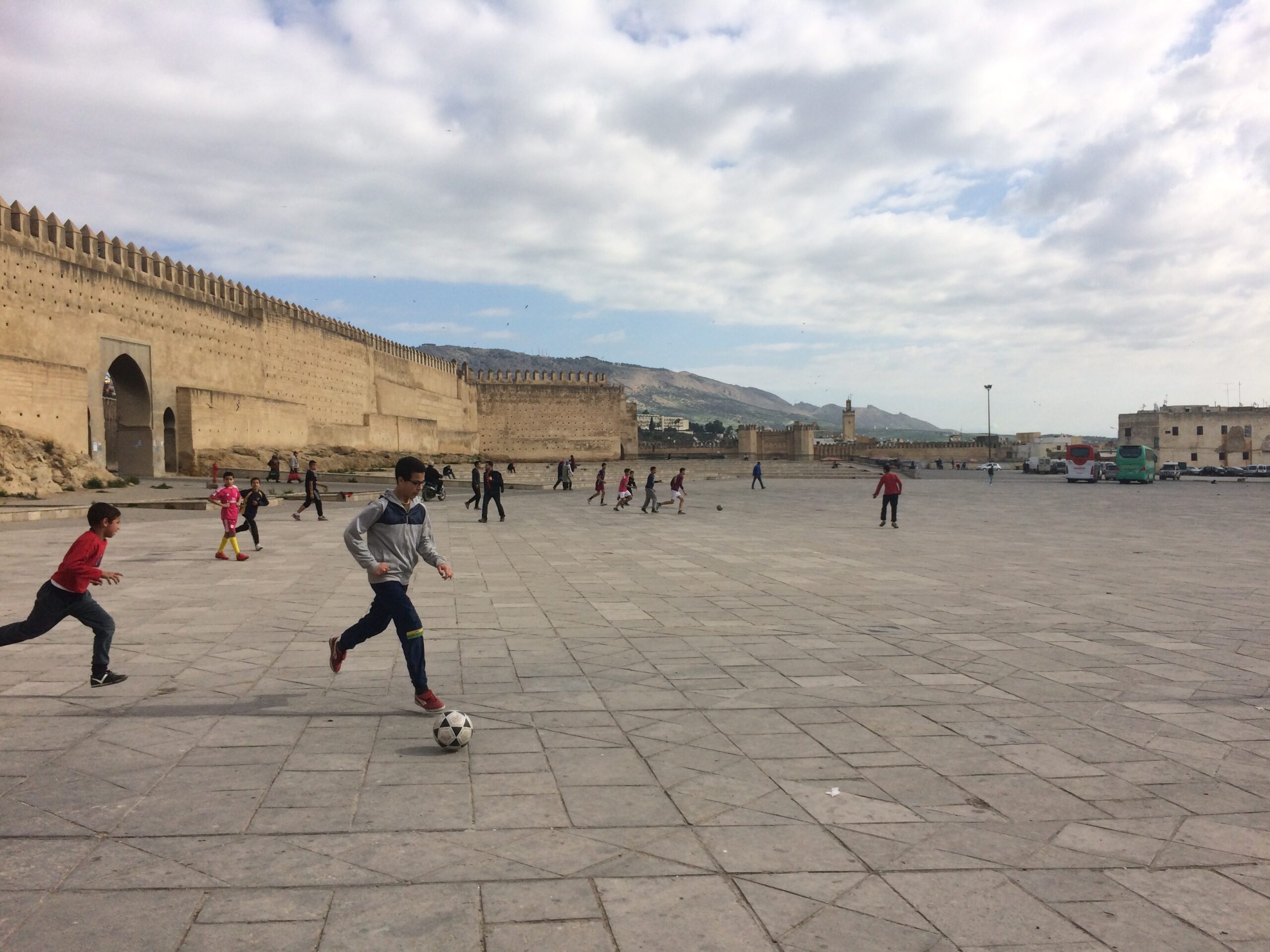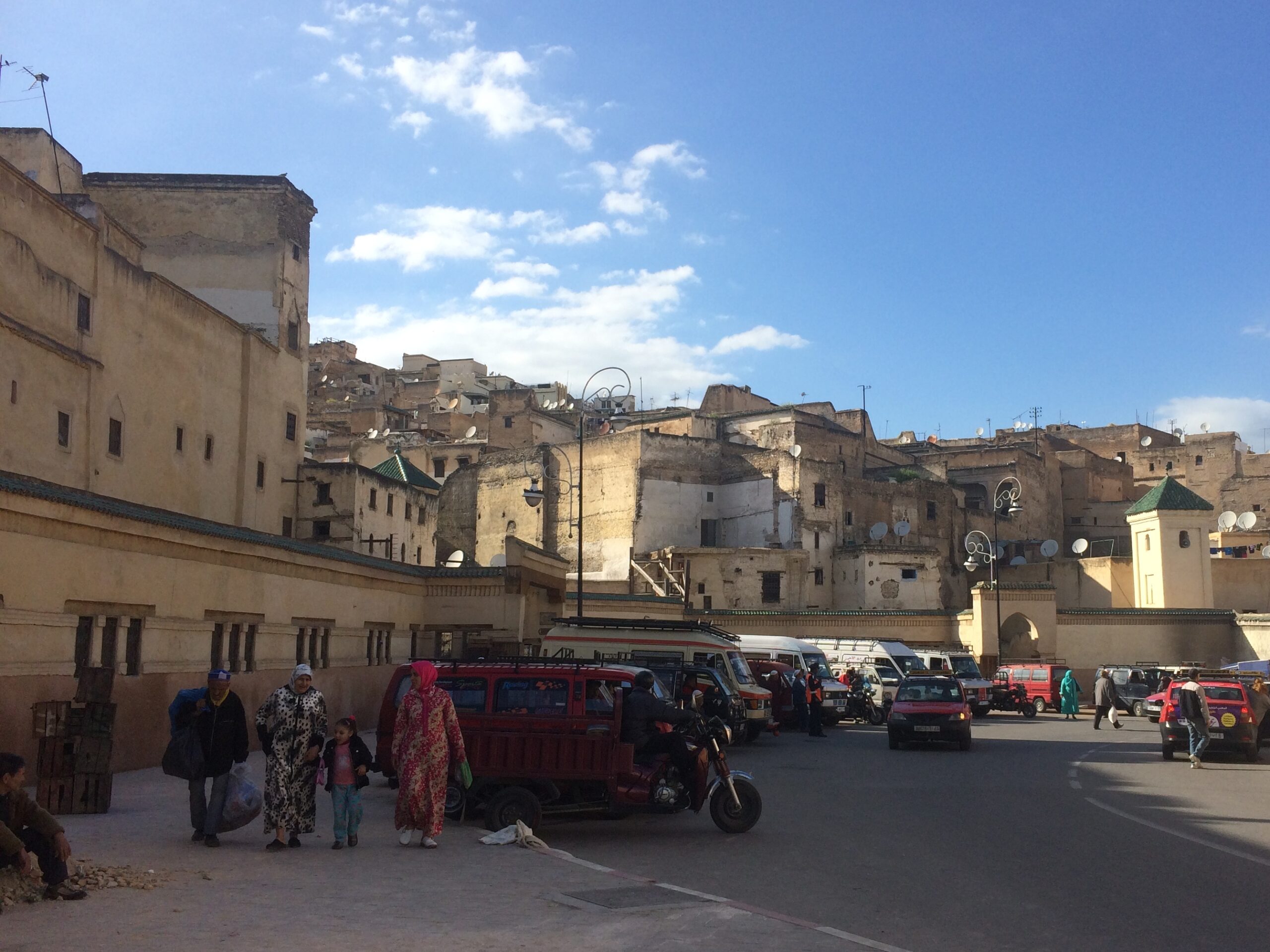 Luckily there was a giant parking lot suitable for RVs just outside the blue gate, Bab Boujloud, for 50 DH/night ($5.17), perfect as a base for exploring Fes el Bali. Locals even used the extra space as a market by day, football field by night.
