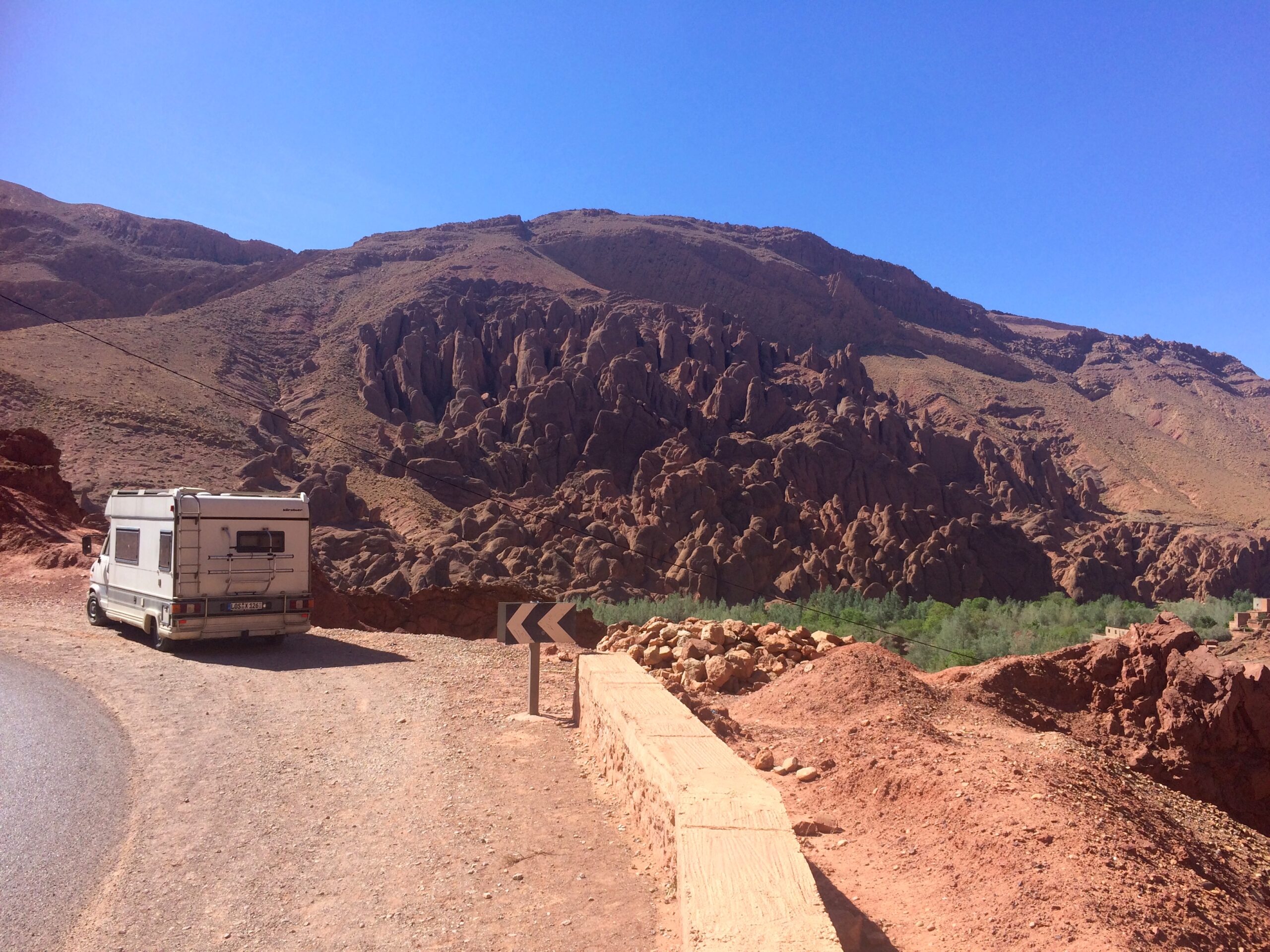 But the most famed road of all in the Dades Valley was this cringe-worthy single lane road filled with hairpin turns. Almost everyone pulled over once they conquered the climb to take this classic photo: