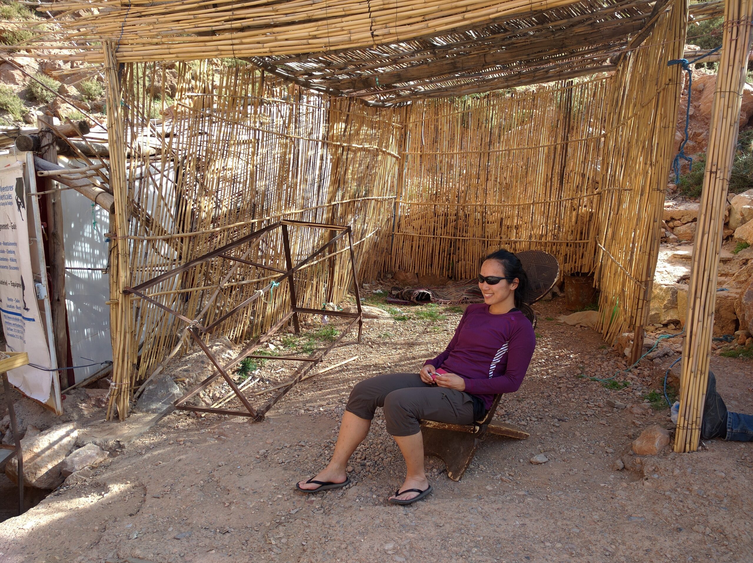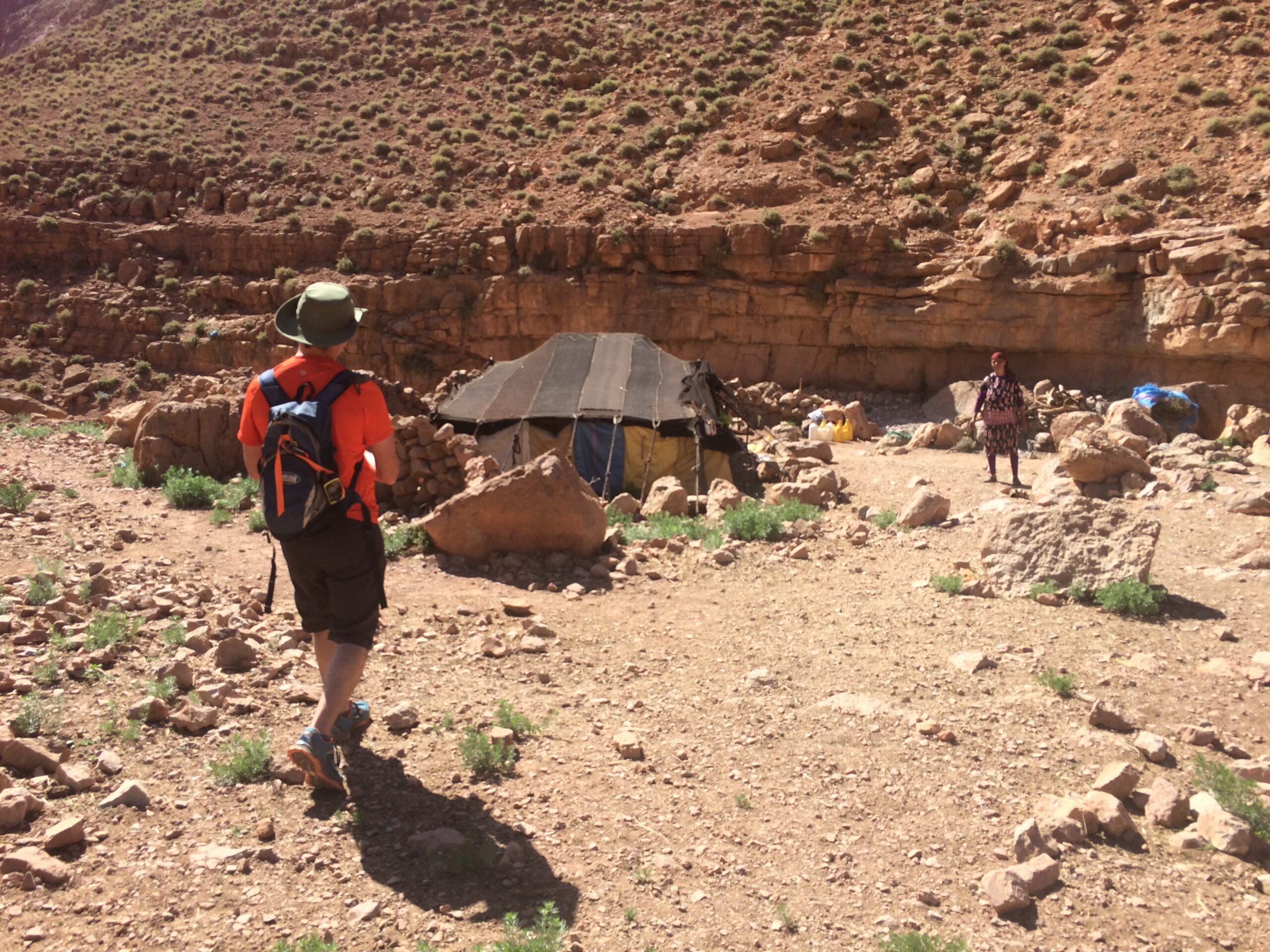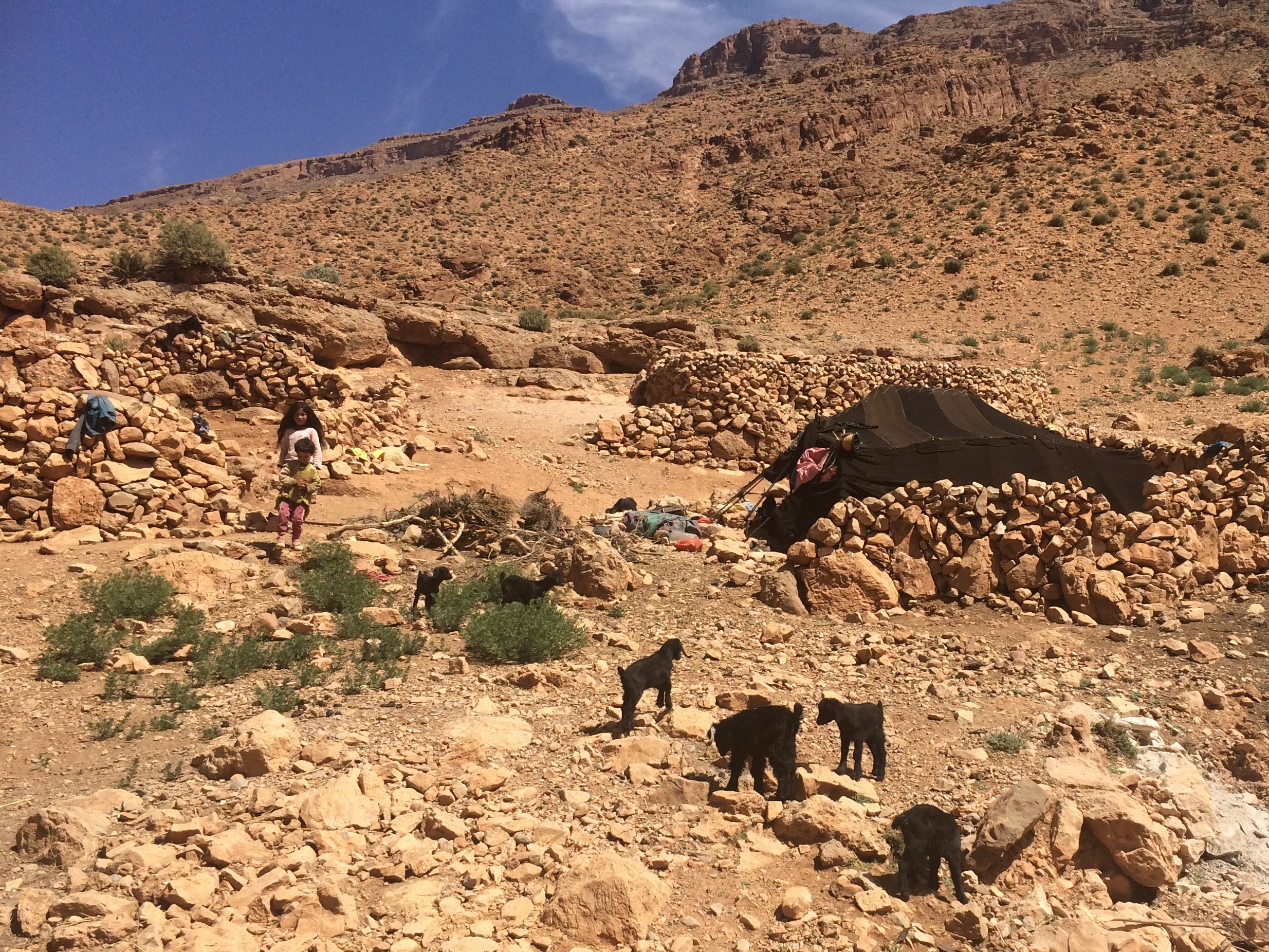 In my endeavor to wander off the beaten path, we drove to Auberge le Festival, a cave hotel further up past the gorge. They had information about 5 different types of self-guided hikes. Due to our time constraints we opted for the shortest hike–a “2.5” hour hike which ended up being 1.5 hours. While completely exposed beneath the scorching sun and not exactly the most scenic hike, we did walk by a couple of remote berber tents belonging to families and their livestock.