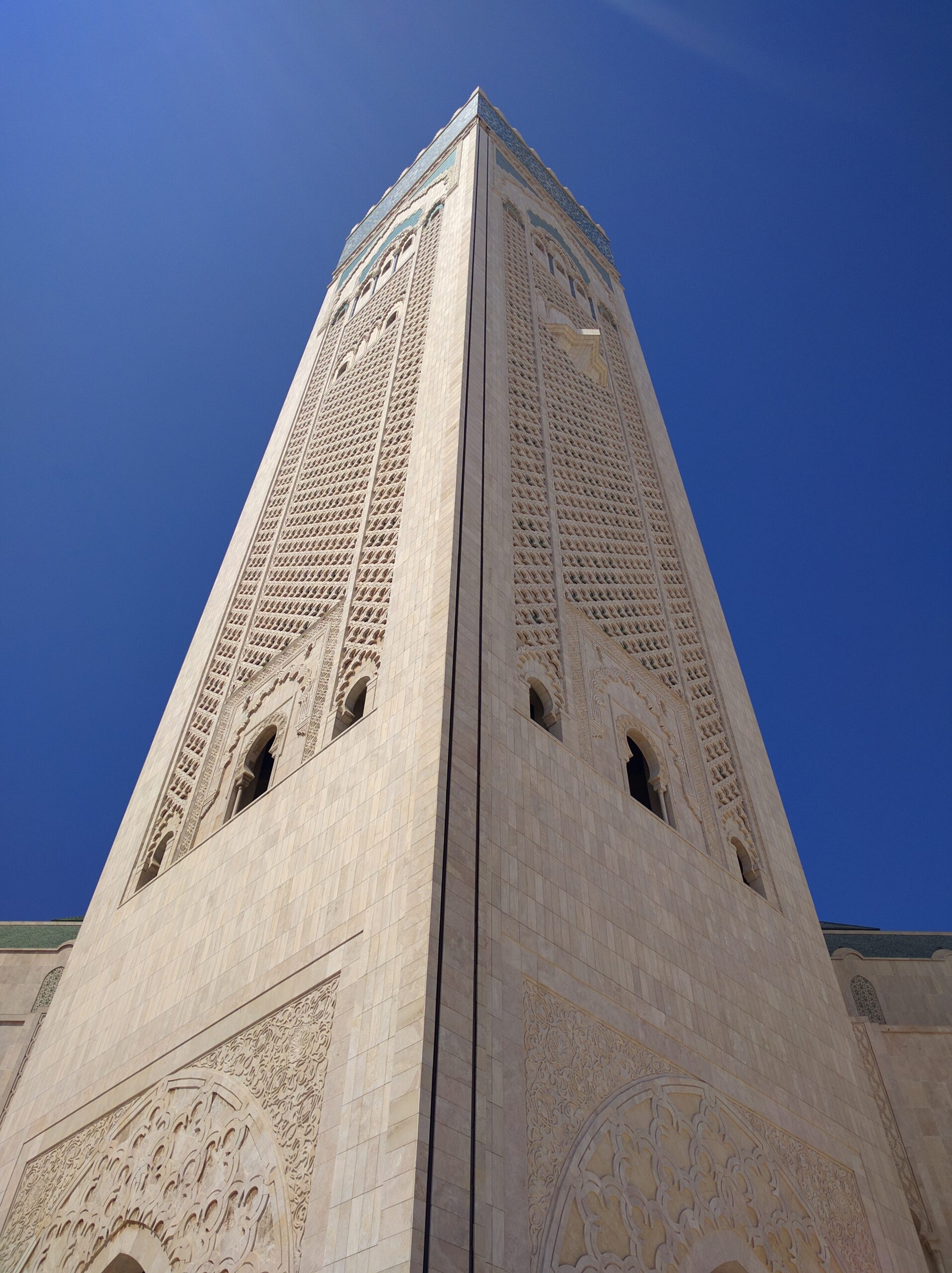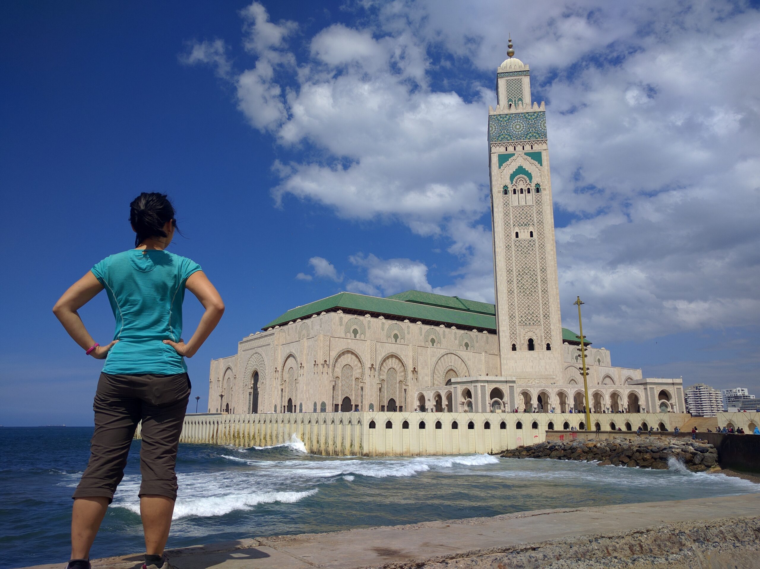 Thanks to the relatively new toll road between Marrakech and Casablanca, the pleasant drive took less than 3 hours and cost about $15 with our class 2 vehicle. Navigating through town to the mosque was more cumbersome than adventuresome, but it was at least nothing compared to driving through the heart of Marrakech on a weekend evening. To our surprise, there was plenty of parking all around the mosque, particularly along the coast. There were however touts demanding money for parking, but we ignored them and they left us alone. And finally after driving, parking, and walking, we made it to the towering Hassan II Mosque.