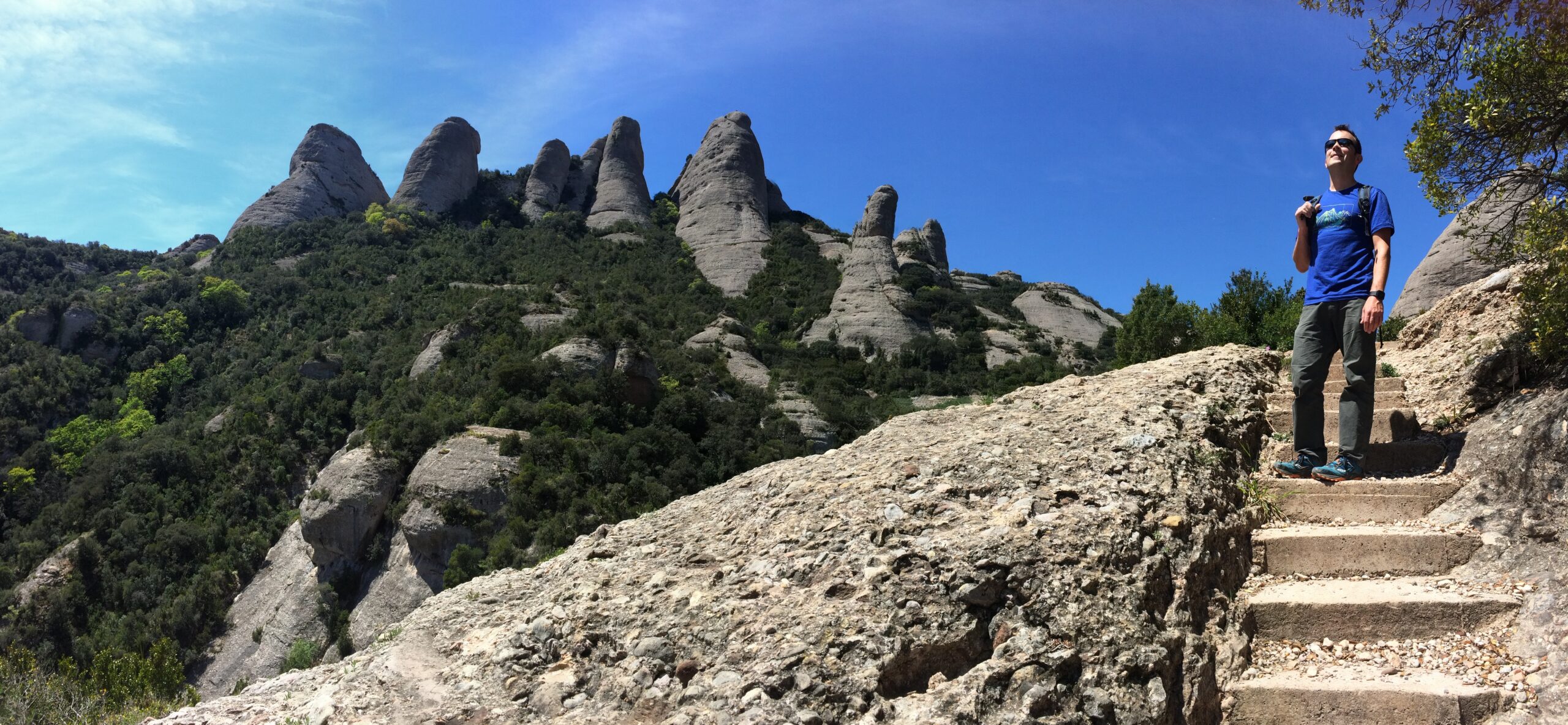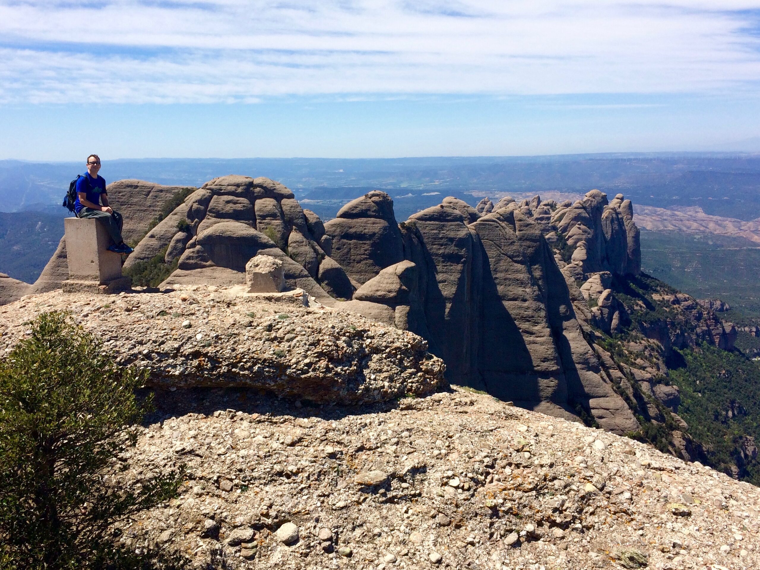 After a brief peek around the monastery we continued our climb up to Montserrat’s highest peak, Sant Jeroni. This trail/footpath was well traveled and well marked, and incredibly popular. Rock formations at the top reminded us of national parks back in the U.S. Despite signs claiming a 1 hour and 45 minute ascent, we summited in 1 hour and 5 minutes—faster than our hike from Monistrol de Montserrat to the monastery! Keep in mind we were still incredibly exhausted/hungover from a weekend of partying in Barcelona.