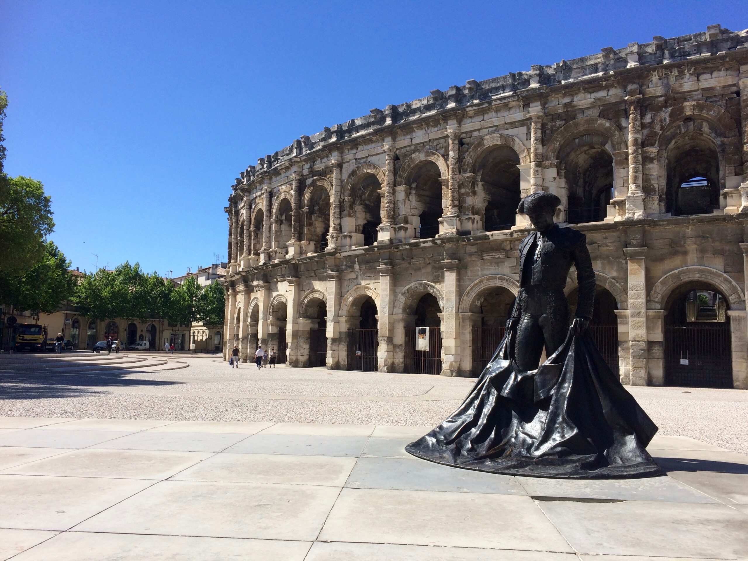 It is not recommended at all to drive into the city center. We parked in one of the many giant parking lots not far from the arena, and took the tram for €2.60 each (roundtrip) from the Costieres-Parnasse station to the Arenes station. Pretty easy and convenient!