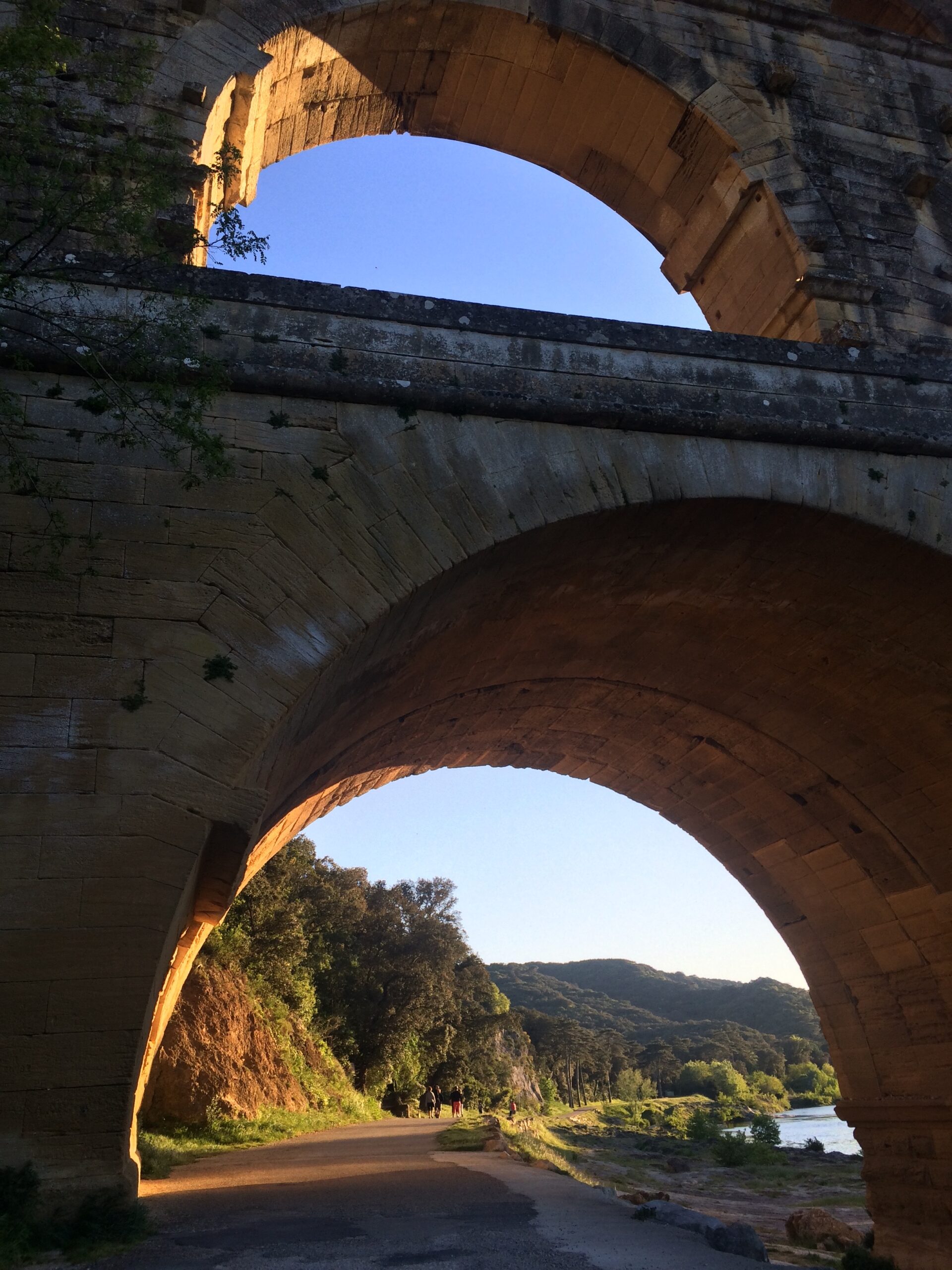 We waited until later in the day to visit Pont du Gard due to the information I had gathered. Unlike the aqueduct smack in the center of Segovia, France’s famed Roman aqueduct spans a river amidst rural hills and woods about a 40-minute drive northeast of Nimes. Unlike the arena, this aqueduct has attained UNESCO status, and as a result, it gets crowded and has the price tag of €18 per vehicle/up to 5 people. What does the price include? Well, obviously access to the aqueduct, and access to the museum and shops. Once the shops close (times vary by season) then the price drops to €10 per vehicle/up to 5 people. Even if visitors enter by bicycle or foot, they must pay a reduced fee. Seriously???