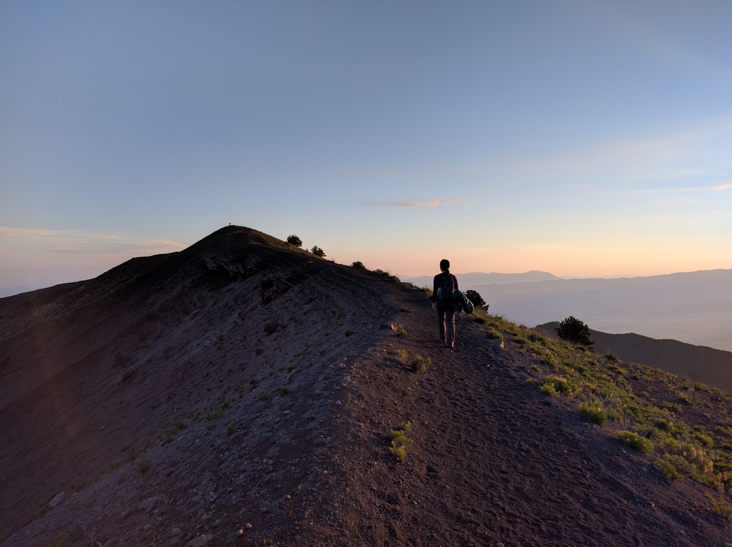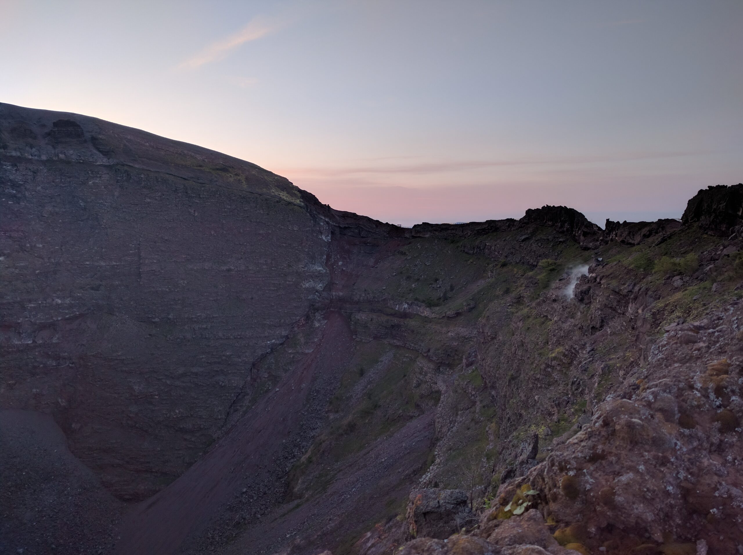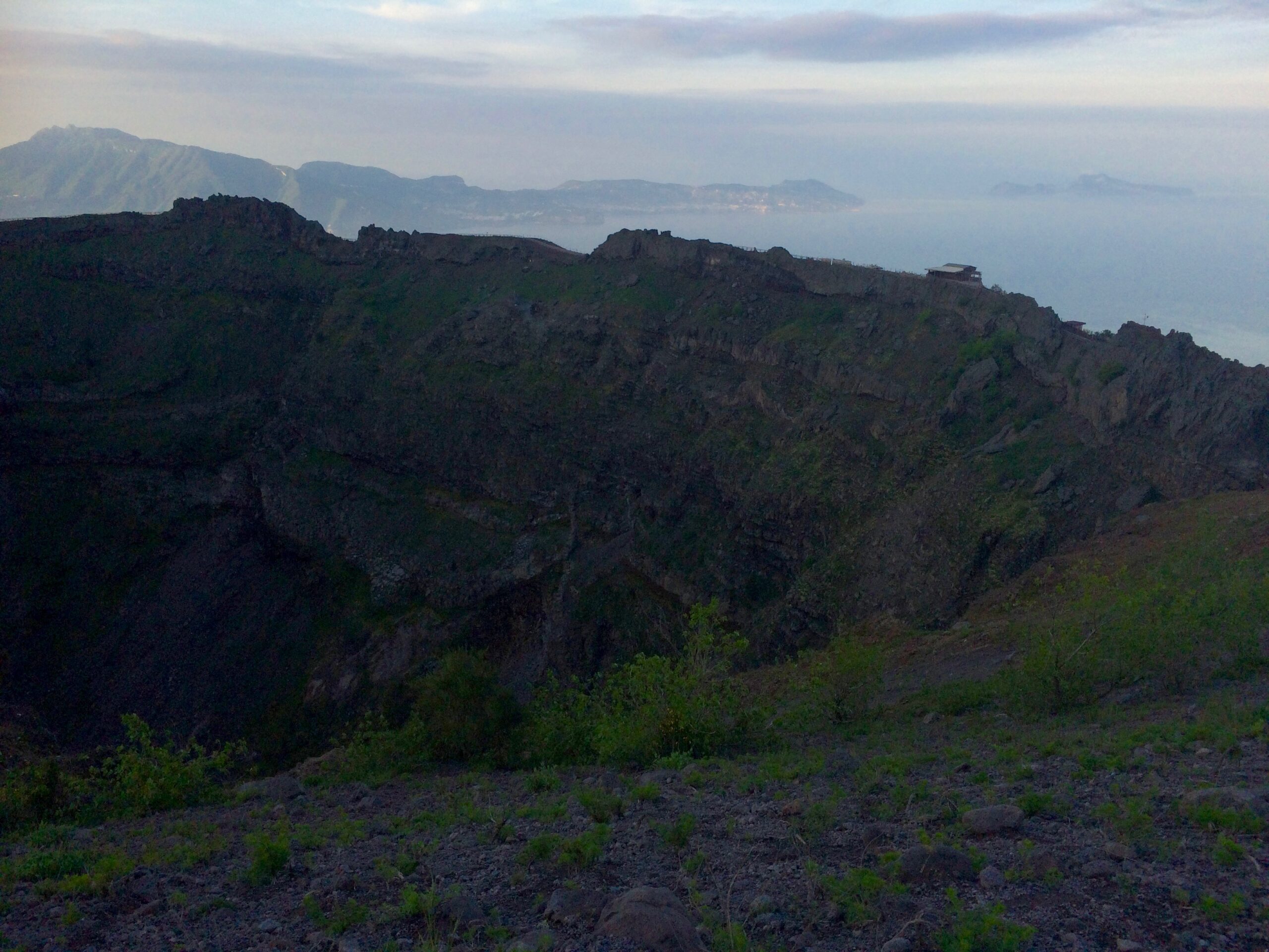 The air was cold and everything was still. Early morning meant clear skies. Naples and Pompeii below were still asleep in darkness, and the typically vibrant Mediterranean spread flat like a blanket. There was not another soul in sight. It was beautiful.