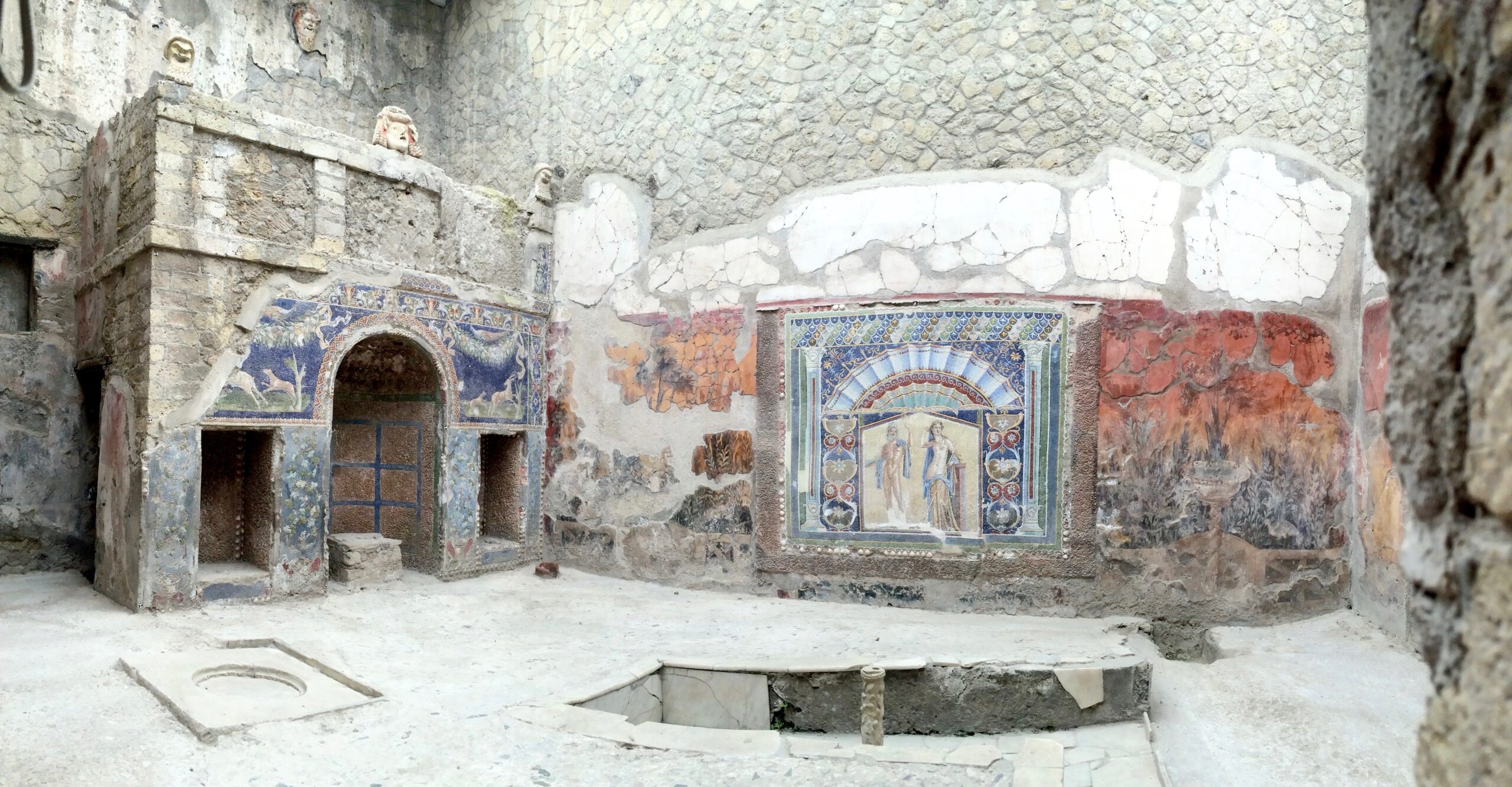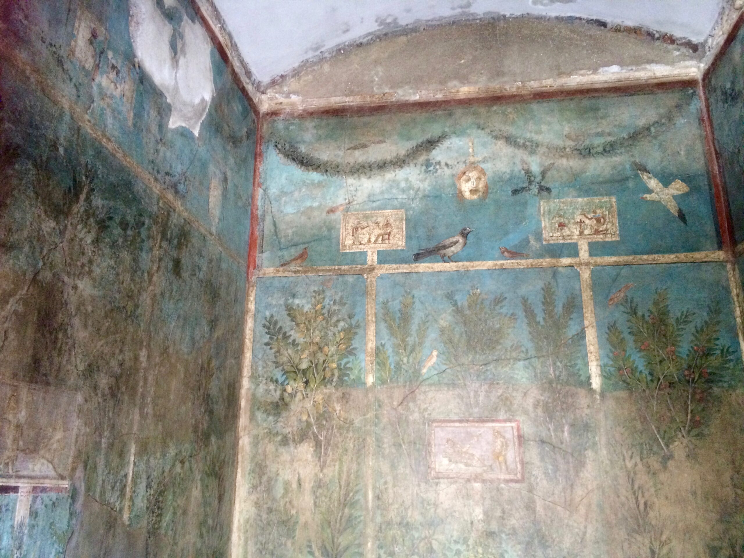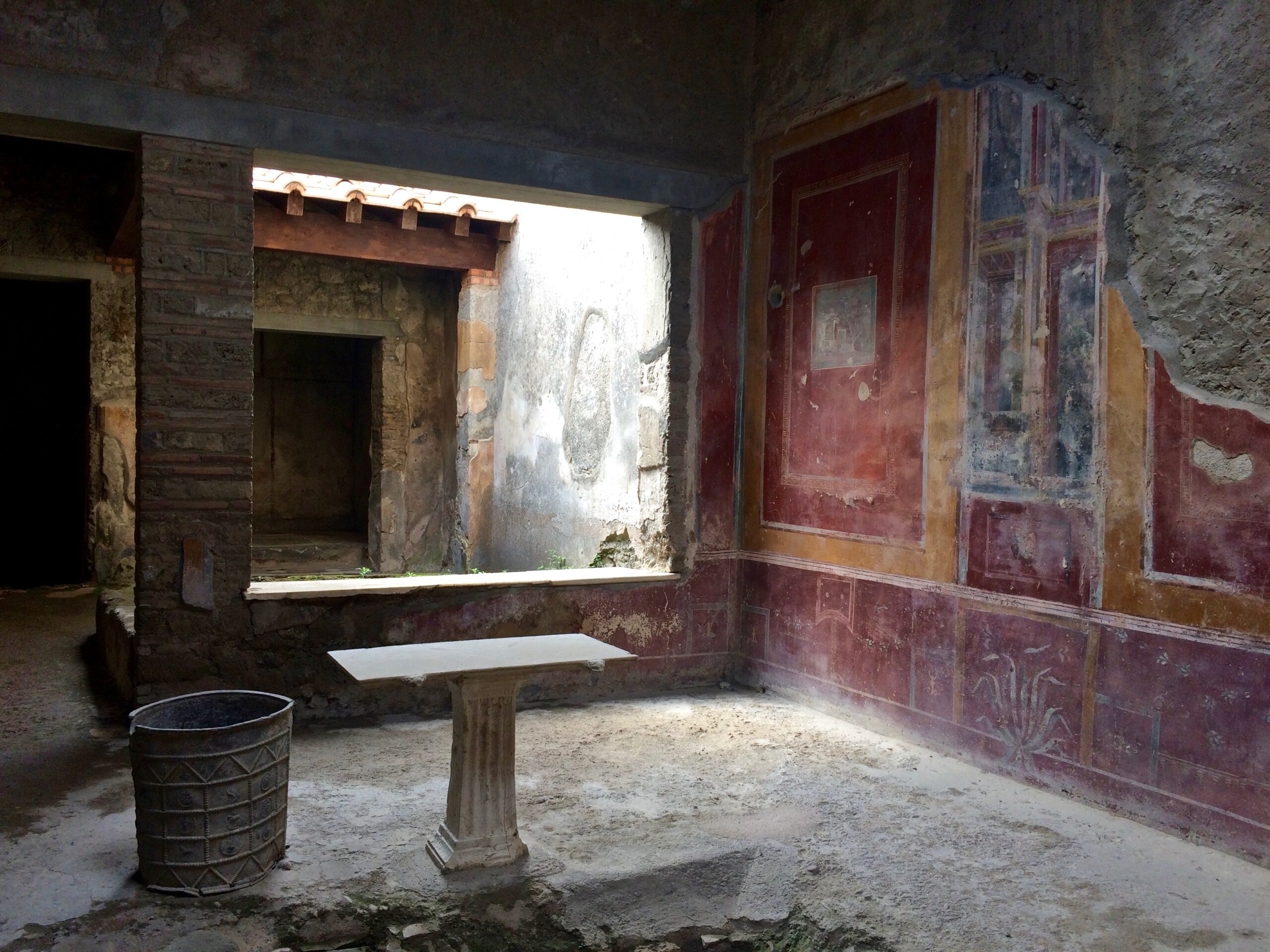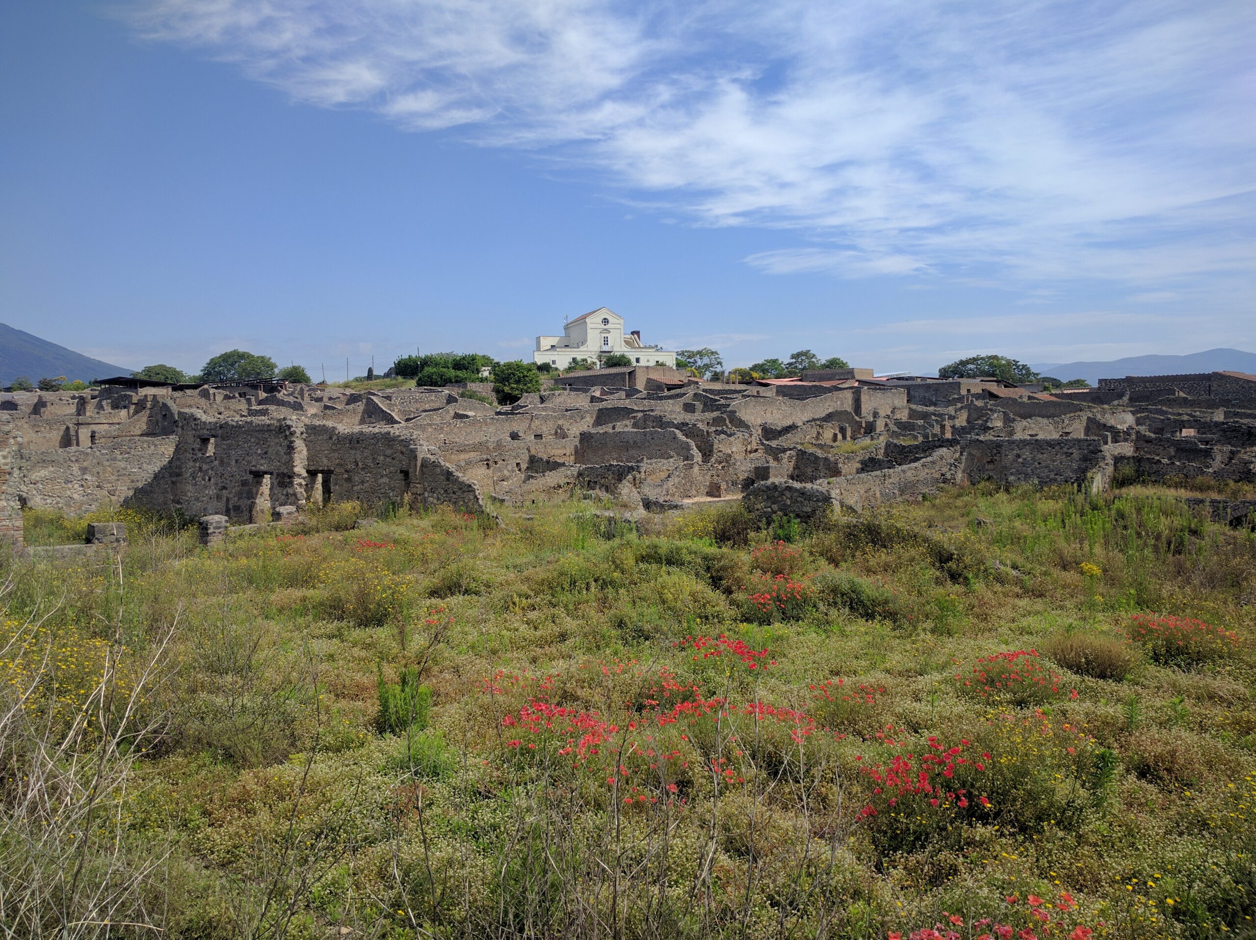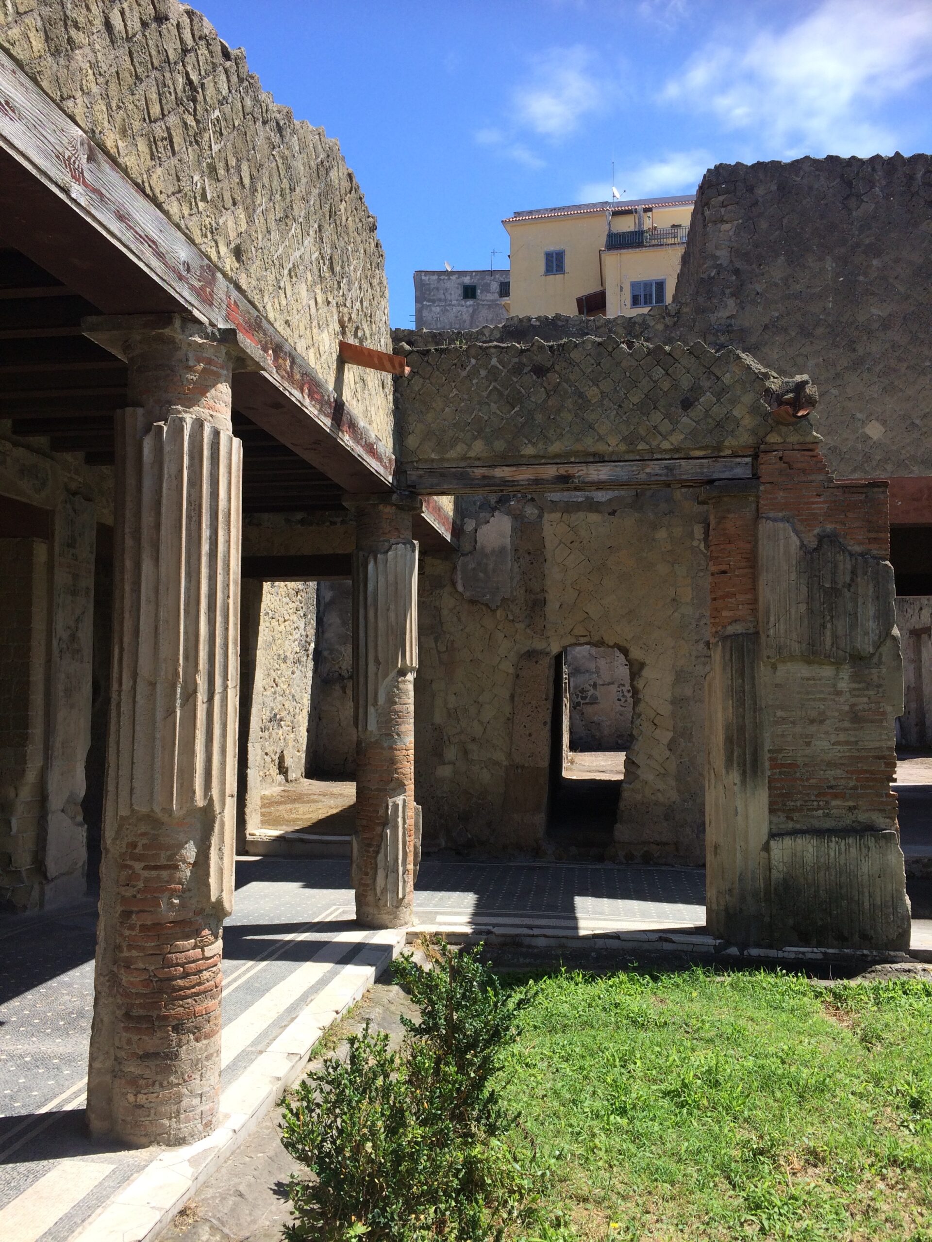 In addition to the wonderfully-preserved frescoes, paintings, columns, and mosaics, my favorite site at Herculaneum was the scene of modern-day Herculaneum literally sitting above ancient Herculaneum, with Mount Vesuvius rising in the background. Imagine living in these homes, knowing that there might possibly be un-excavated ruins buried beneath your home!