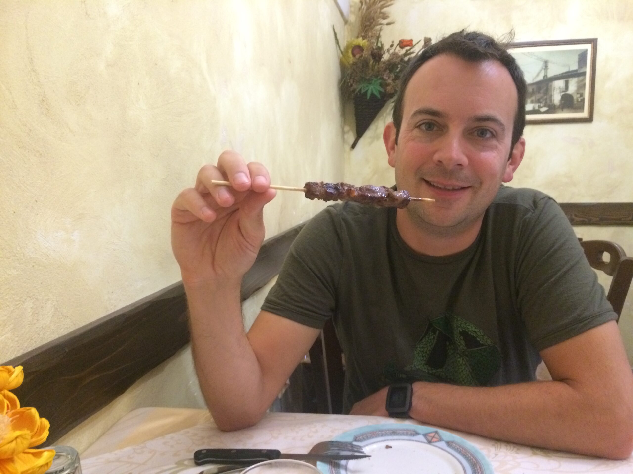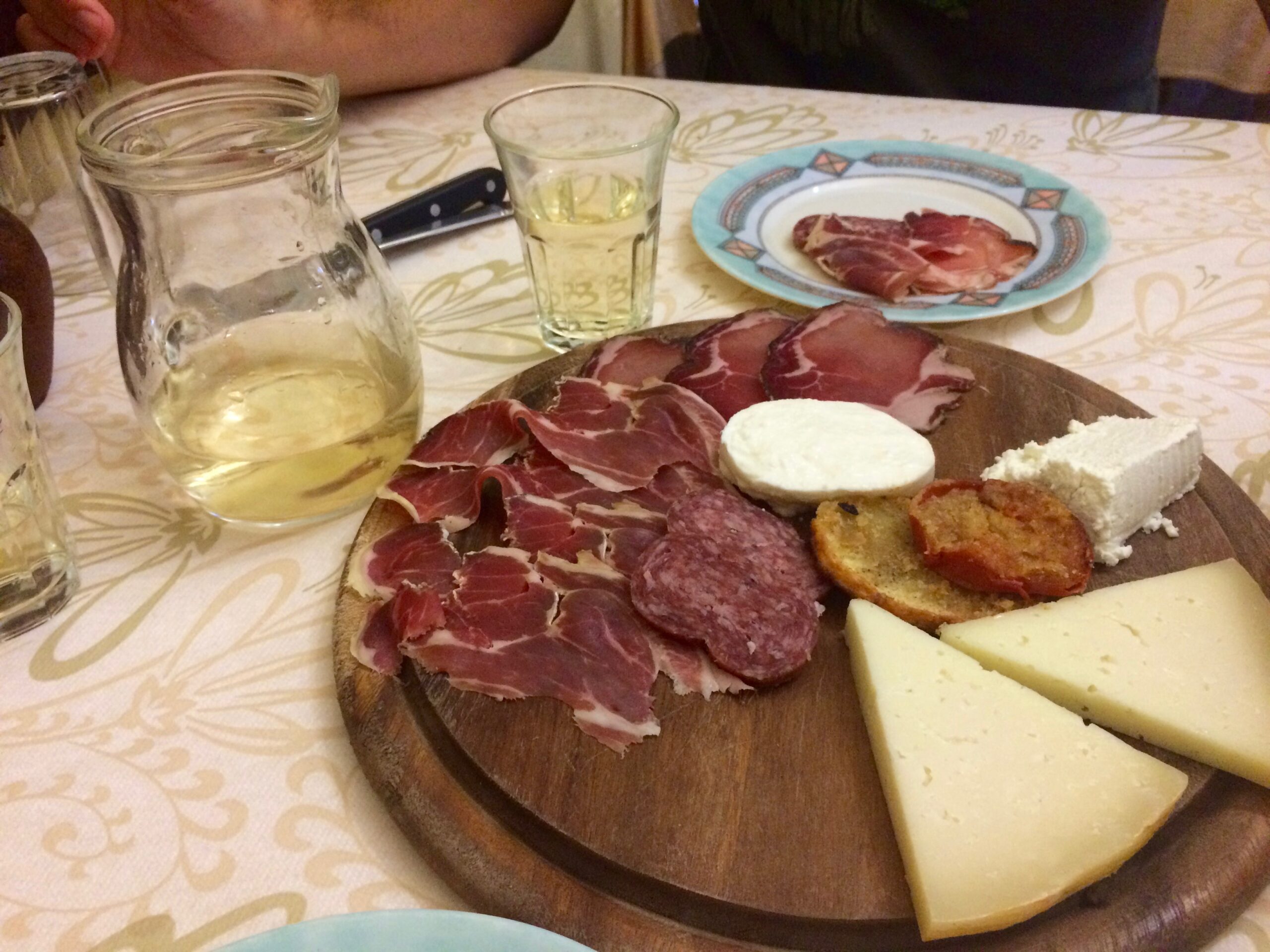 We chowed down on some antipasti and arrostocini, Abruzzo’s famous lamb skewers. Remember, this region is rural, meaning the meats and cheeses are from animals they raise—literally from farm to table.