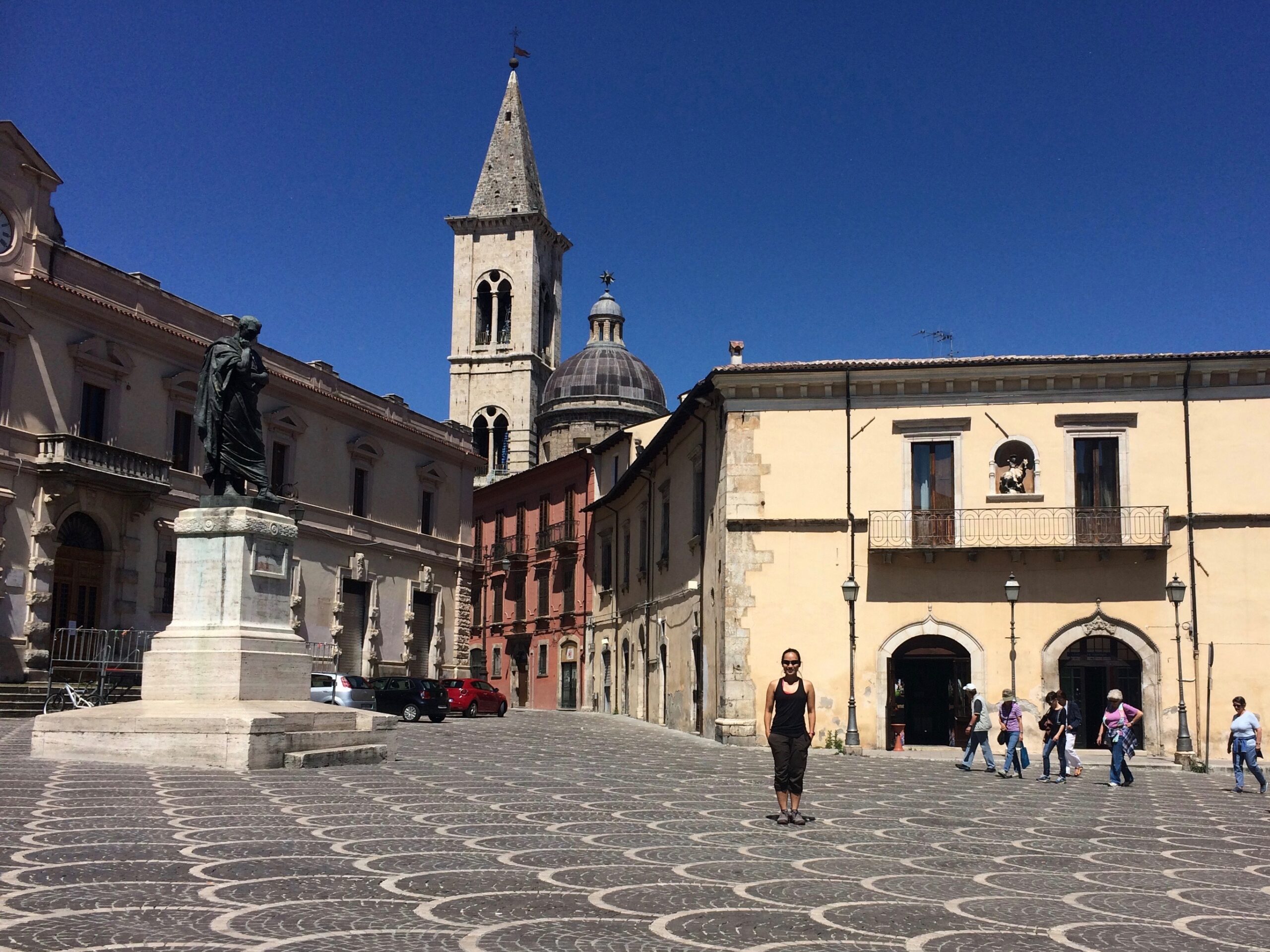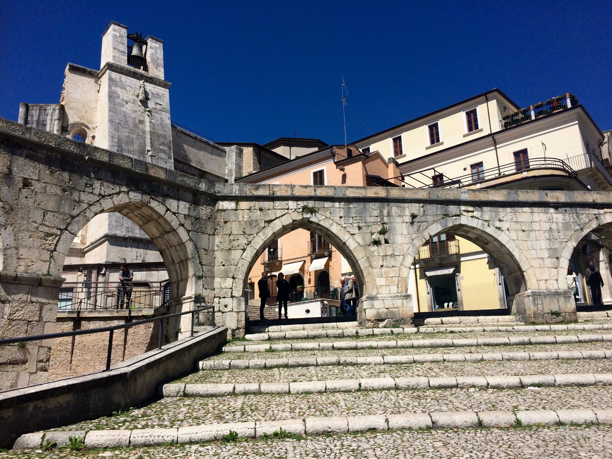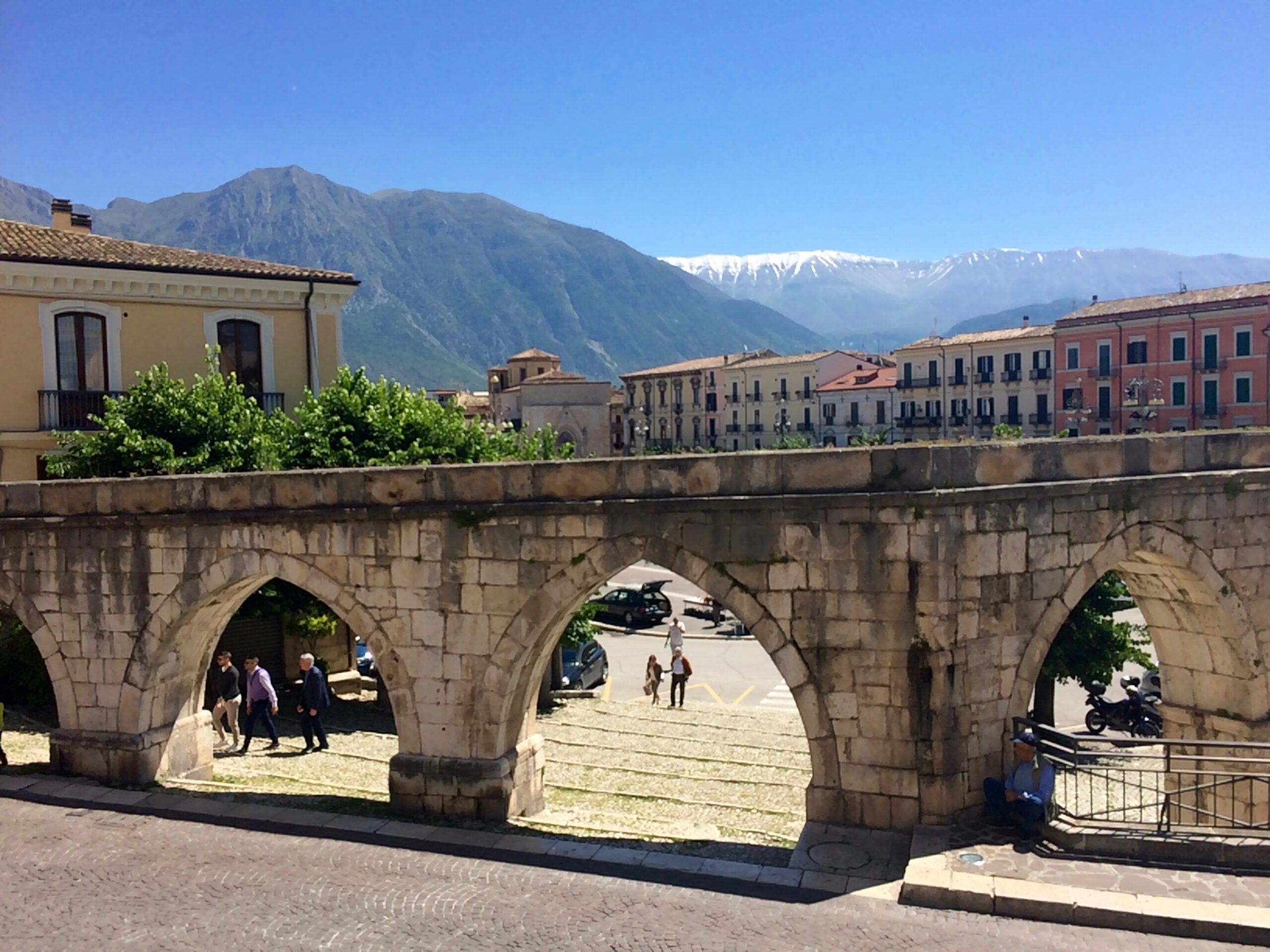 Next, we fell in love with the big little town of Sulmona, about an hour’s drive north of Barrea. It was the weekend when we arrived, and we enjoyed watching the locals, young and old, gather and mingle in the gorgeous town square.