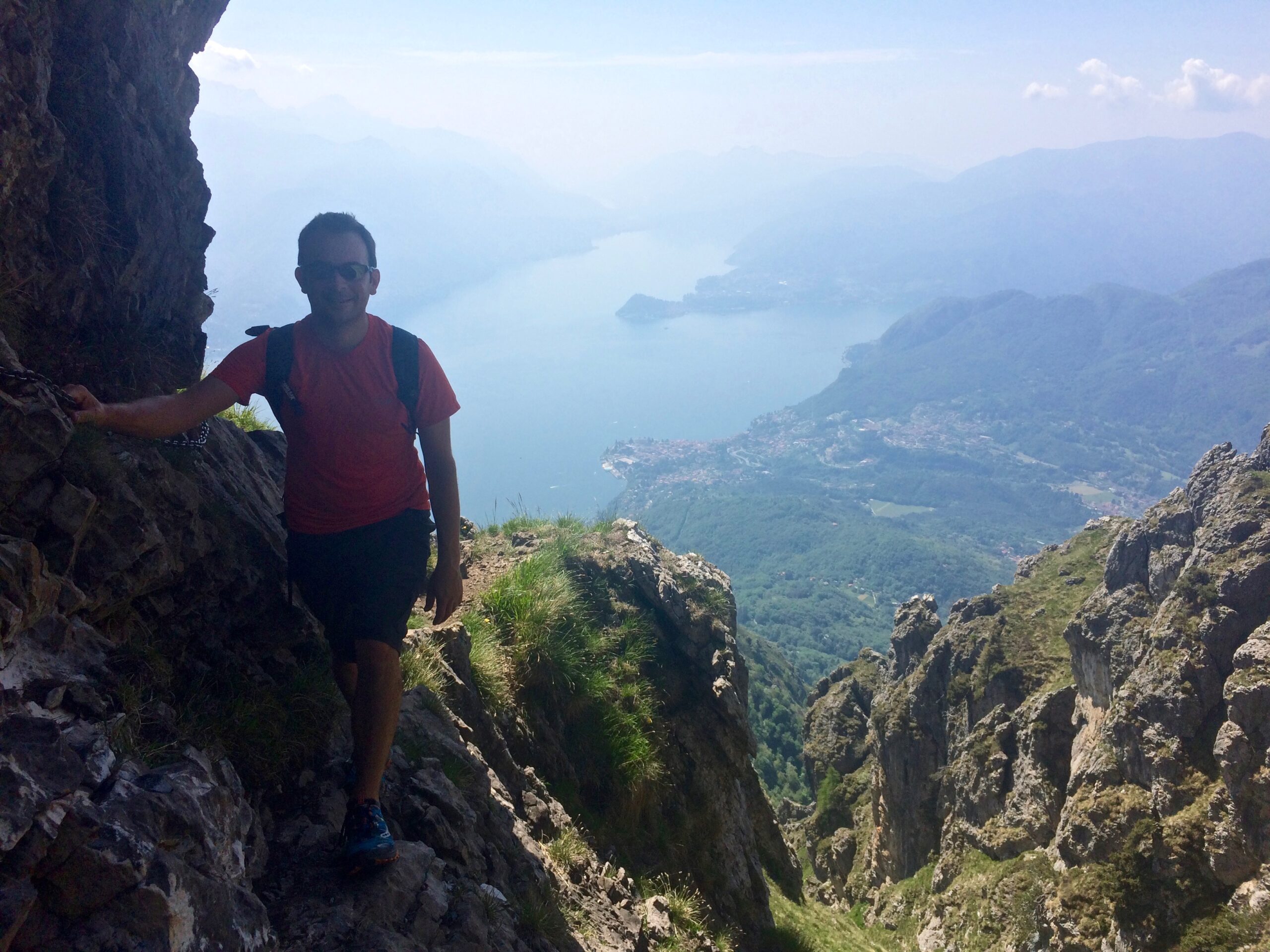 Not far from the rifugio was the viewpoint Pizzo Coppa. Personally, I thought the views here far surpassed the views from the summit. Looking south, we were able to gaze down at Lake Como, Italy to the east and Lugano, Switzerland to the west. Chris’ feet point toward Italy below:
