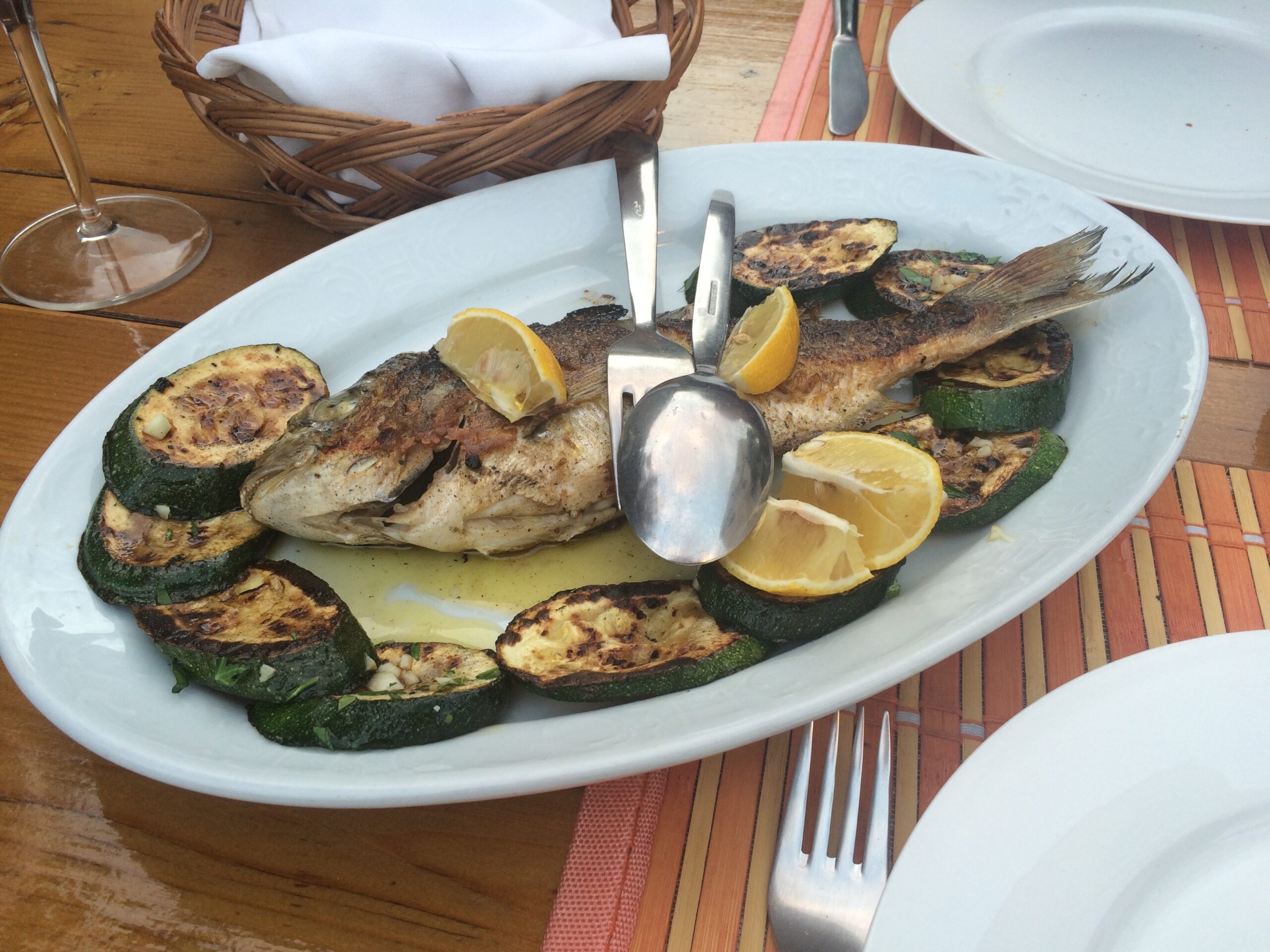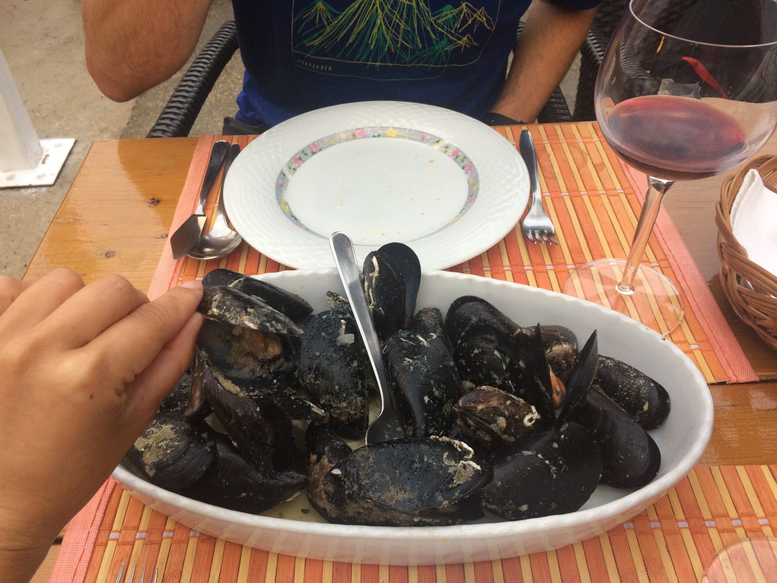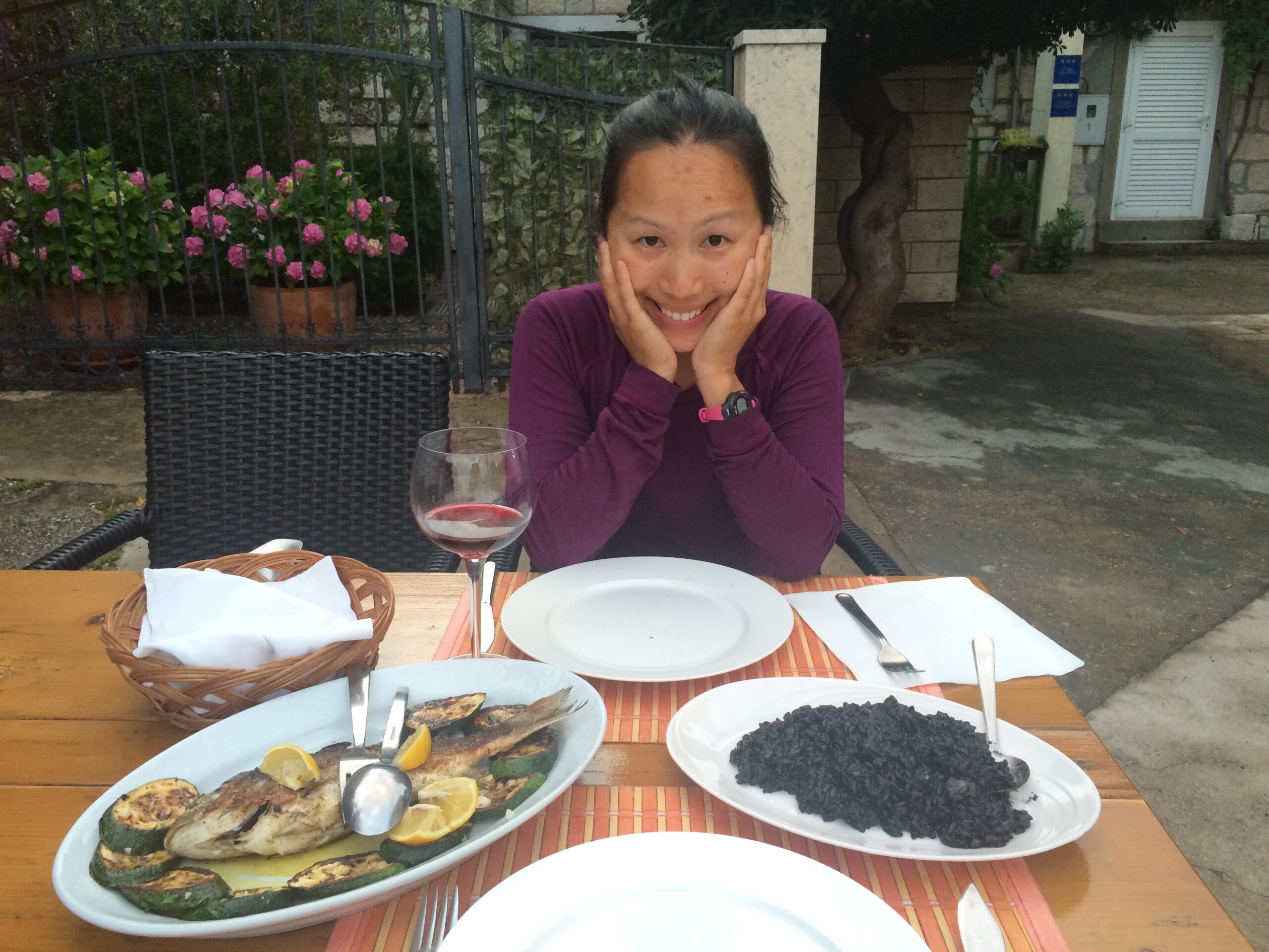 For dinner we dined at the highly regarded Konoba Maris, whose owner grows his own grapes and produces his own wine. Not only did we enjoy the best meal we had in Croatia, consisting of black squid ink cuttlefish risotto, mussels in garlic and white wine, grilled fish, homemade bread, and locally produced wine for only 270 HRK (~$40), we ended up chatting with the restaurant owner well after dinner about his life and family. He even continued to pour us extra wine to keep us chatty.