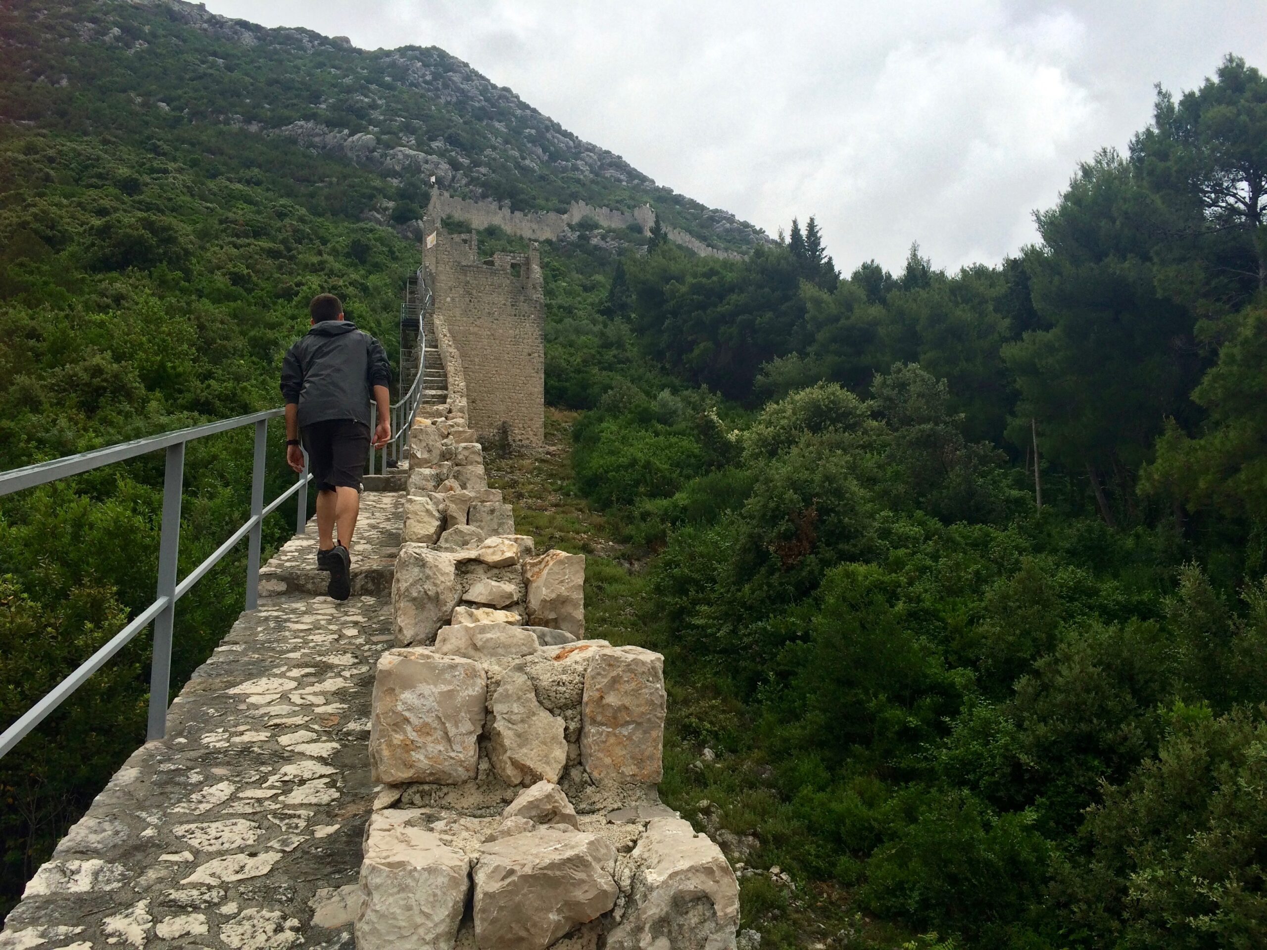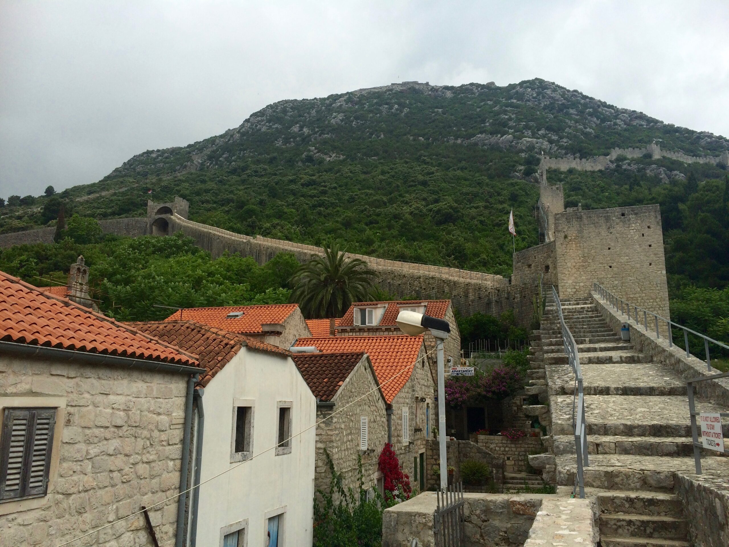 We returned to Korcula town, took the ferry back to the Peljesac peninsula, and drove all the way to Ston, the start of the peninsula. Ston hardly has any European fame despite boasting the 2nd longest wall fortification in the world (originally 7 km long but now 5.5 km long). Yep, the Great Wall of China is #1, and the Wall of Croatia (Ston) is #2. It cost 40 HRK ($6) per person to walk the walls.