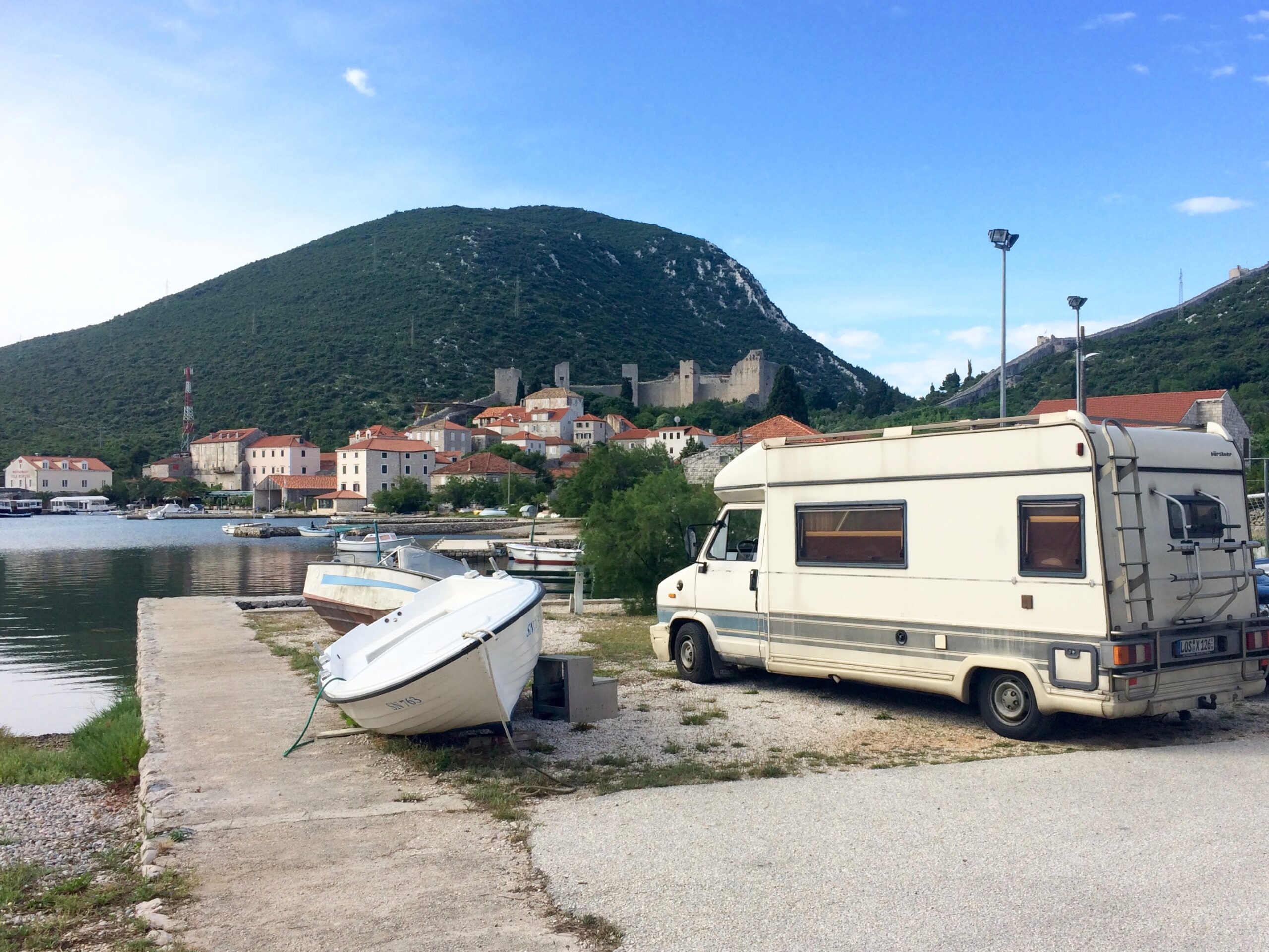 After crossing multiple borders from Bosnia to Croatia, back to Bosnia, and then back to Croatia, we finally made it to the Peljesac Peninsula, an untouched natural area known for wine and oysters. We finally made it to the small beach village of Trstenik, which unfortunately faced severe forest fires only a year prior. Despite being surrounded by burnt trees, the village and beach itself were still beautiful. We parked literally on the edge of town above the beach: