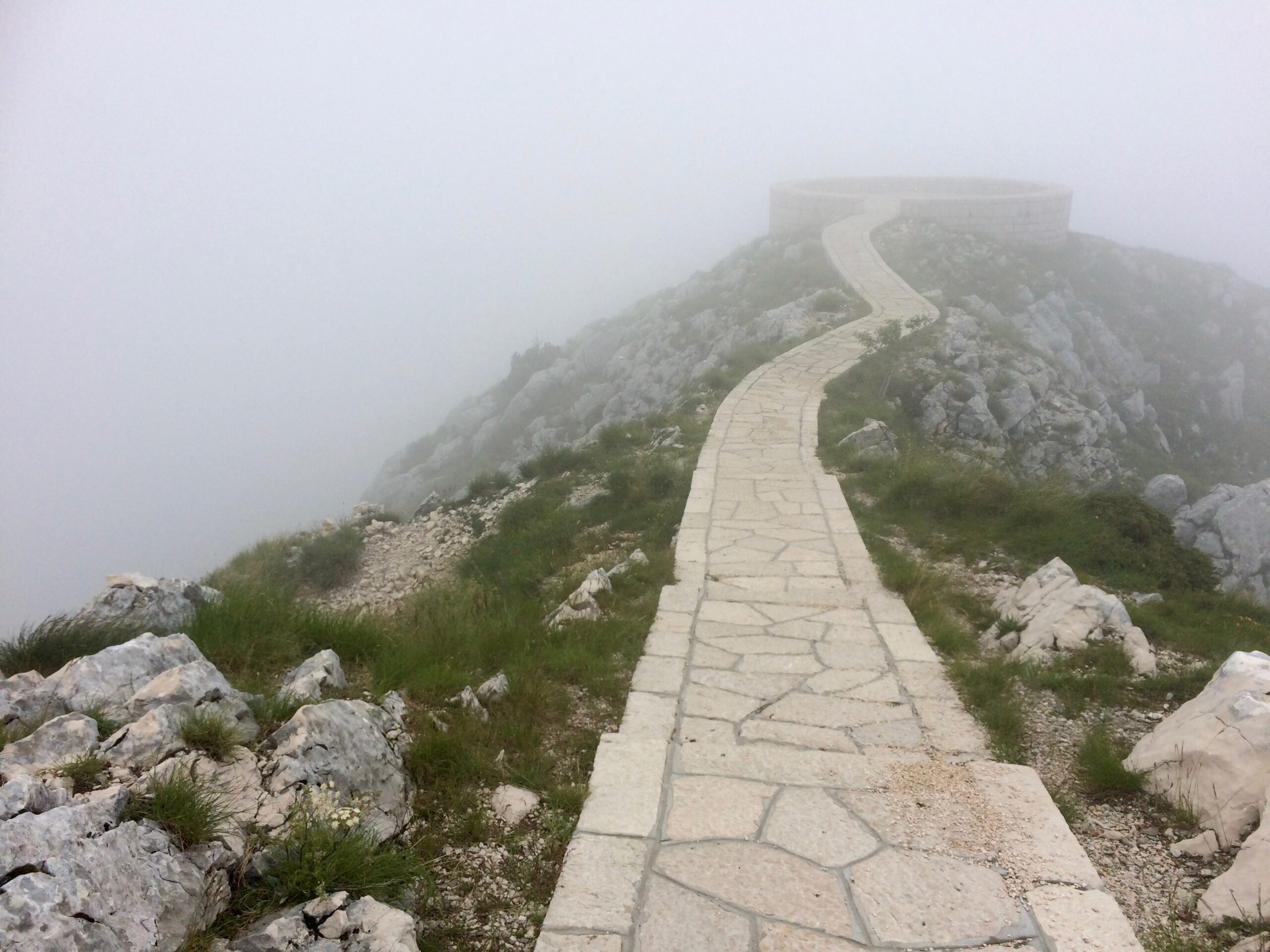 The point at which the road ended was just below the imposing Jezerski Peak, where 400+ steps up from the parking lot led us to the popular mausoleum of Petar Petrovic-Nejegos, a famous poet and philosopher of Montenegro. It was questionable whether or not epic views of the mountains would be obscured or not by the low clouds, but we knew going up was a must. After all, we did make it that far.