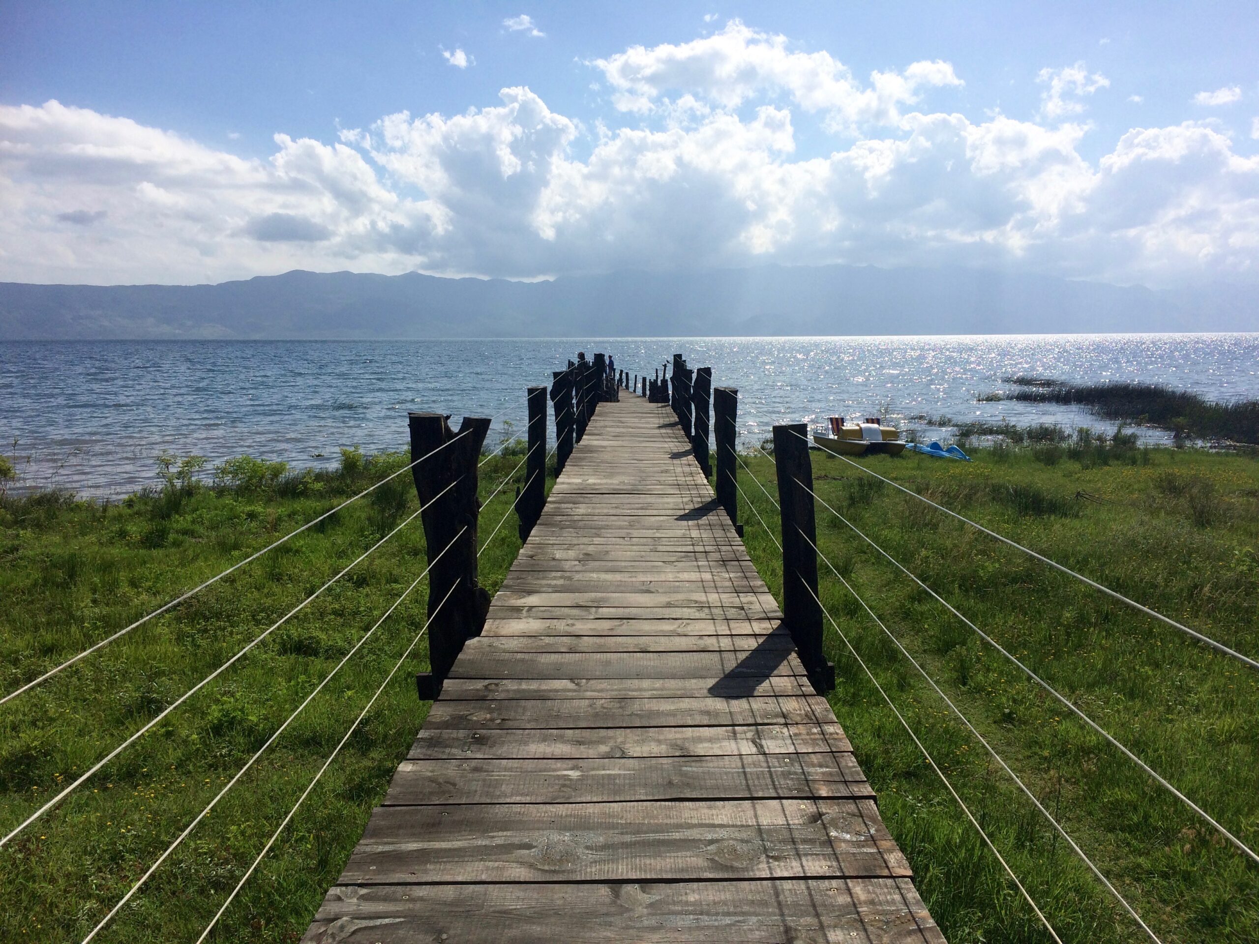 Finally, at 10:25am, about 1.5 hours past our departure time for a 3-hour ferry ride, our crappy little boat set off down the lake. We occupied the rear seats right next to the tiny, deafening engine that reeked of gas fumes, vibrated our seats like a cheap chair massage, and heated the wooden planks beneath and around us that could have melted the soles of our shoes. On top of that, our cushioned seats were wet, soaking who-knows-what into our pants. And this was apparently one of Europe’s greatest ferry rides.