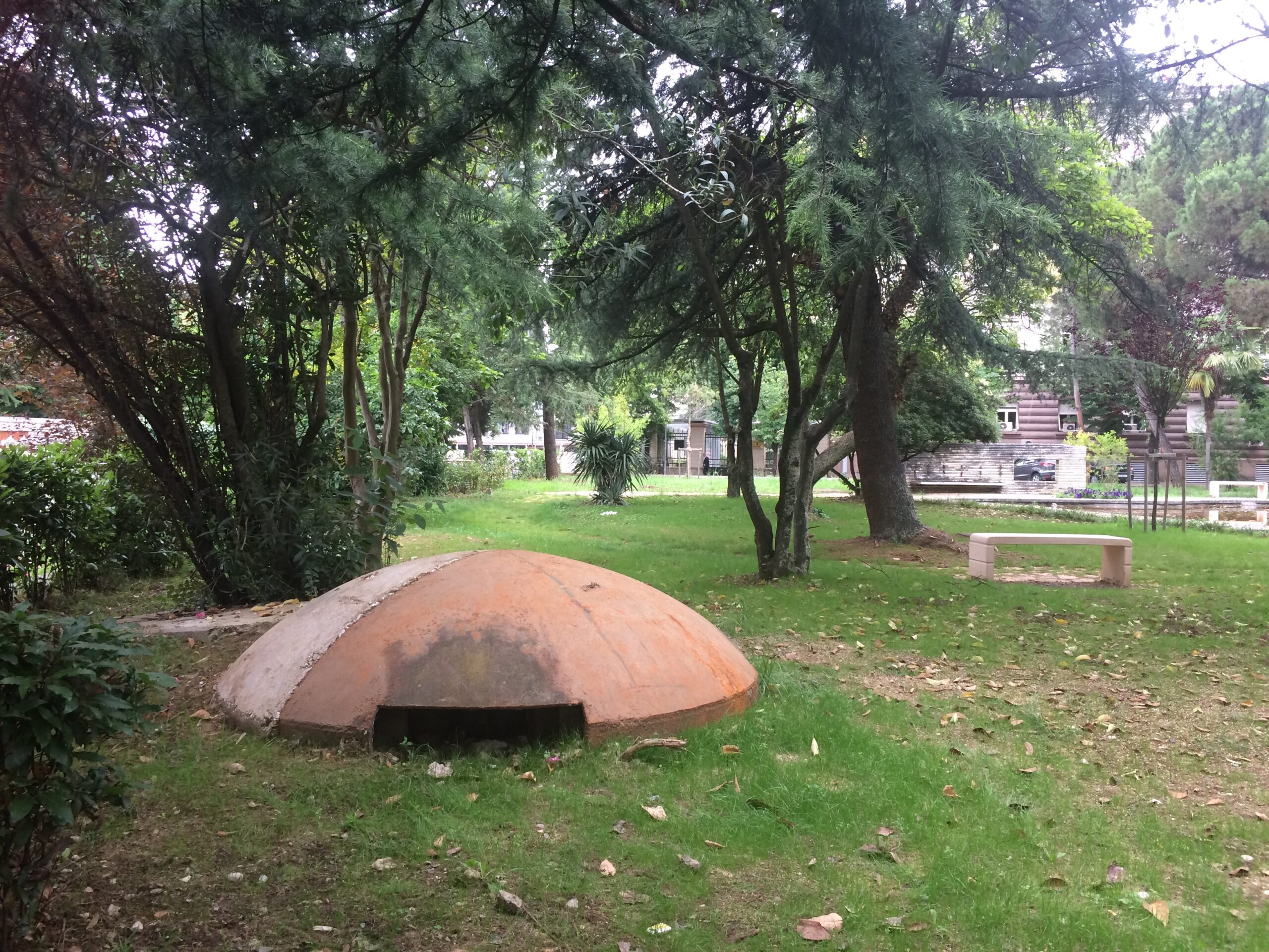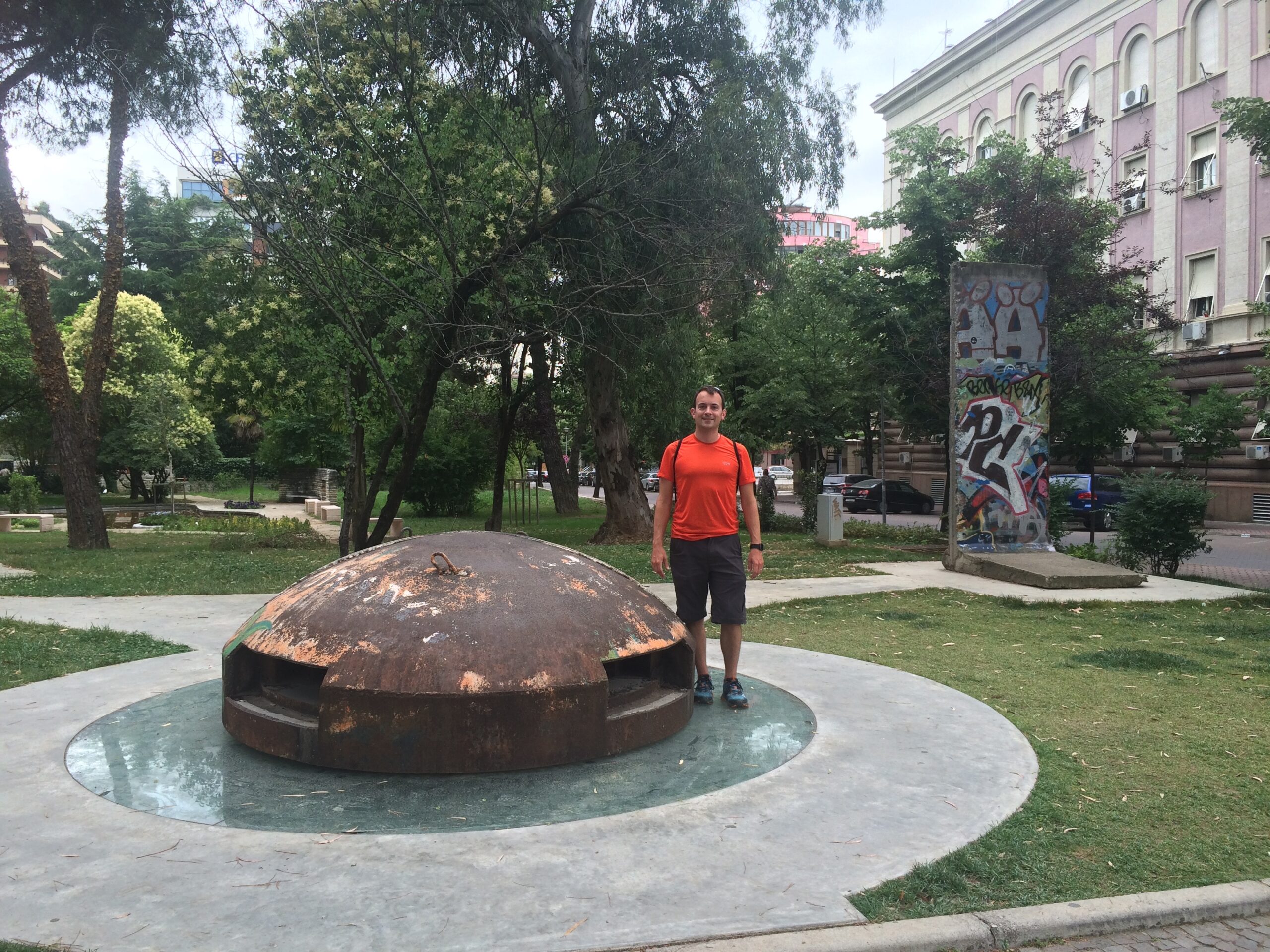 Near the Ismail Qemali Monument, the remains of three pillbox bunkers lay scattered within the small, grassy park. When the communist leader severed relations with China, he feared the country would be raided by neighboring countries and established over 700,000 bunkers throughout Albania. We definitely saw a few pillbox bunkers randomly on the side of the road while driving throughout the country. This one in particular was even paired with a section of the Berlin Wall–a gift from Germany signifying a post-communist era.