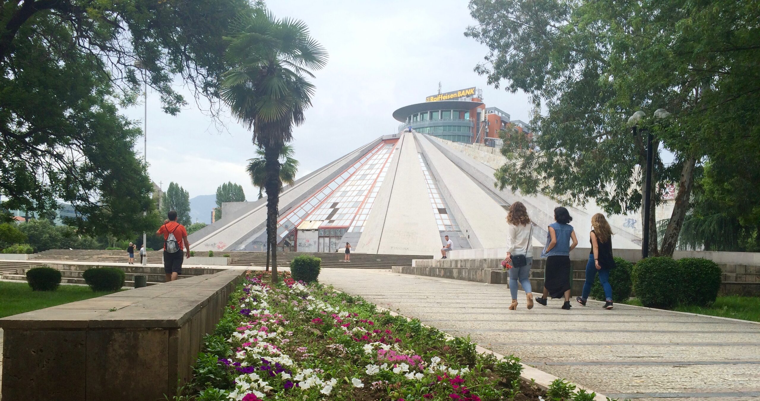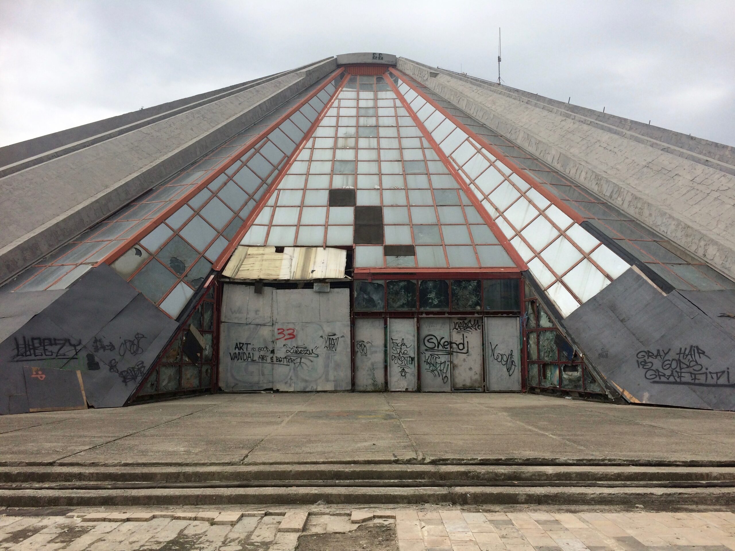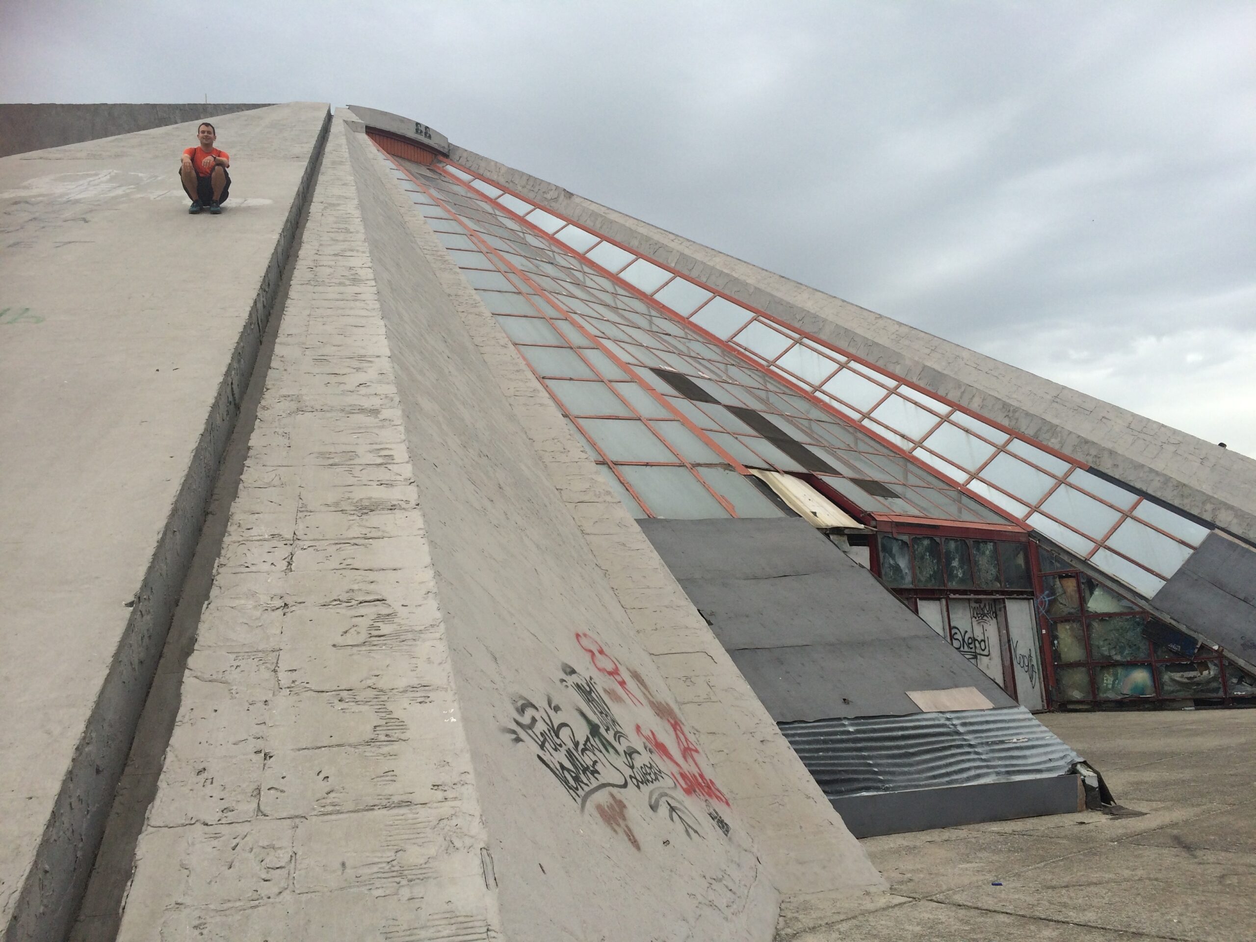 Down the street from these bunkers was my favorite historic site of all. See it whichever way you want, whether an eyesore or a grand monument, but its meaning is still symbolic nonetheless. The daughter and son-in-law of the late communist leader designed this pyramid structure to commemorate his legacy. It opened in 1988 as a museum of the leader, but quickly became a conference center in 1991. Since then the structure has been completely vandalized, with bad graffiti and smashed windows as the typical facade of the structure.