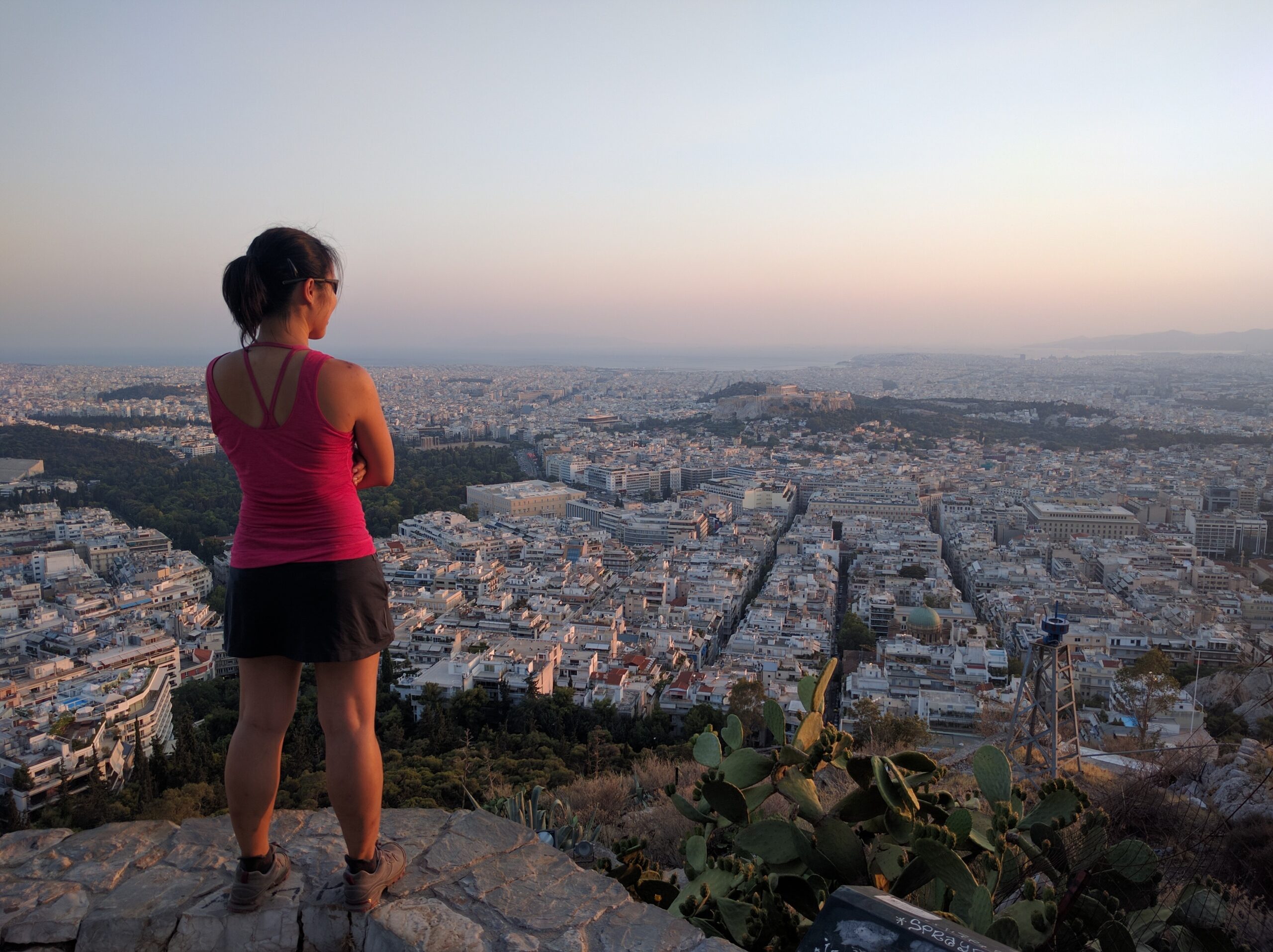 In order to truly get a scale of just how massive the city is, we walked up Lycobettus hill for sunset. While we didn’t think the walk was difficult at all, plenty of other people sure looked miserable. The best views of Athens can be seen from the summit of this hill–we were able to gaze across the city at the Acropolis, the sea port, the surrounding hills, and all the seemingly endless array of white buildings.