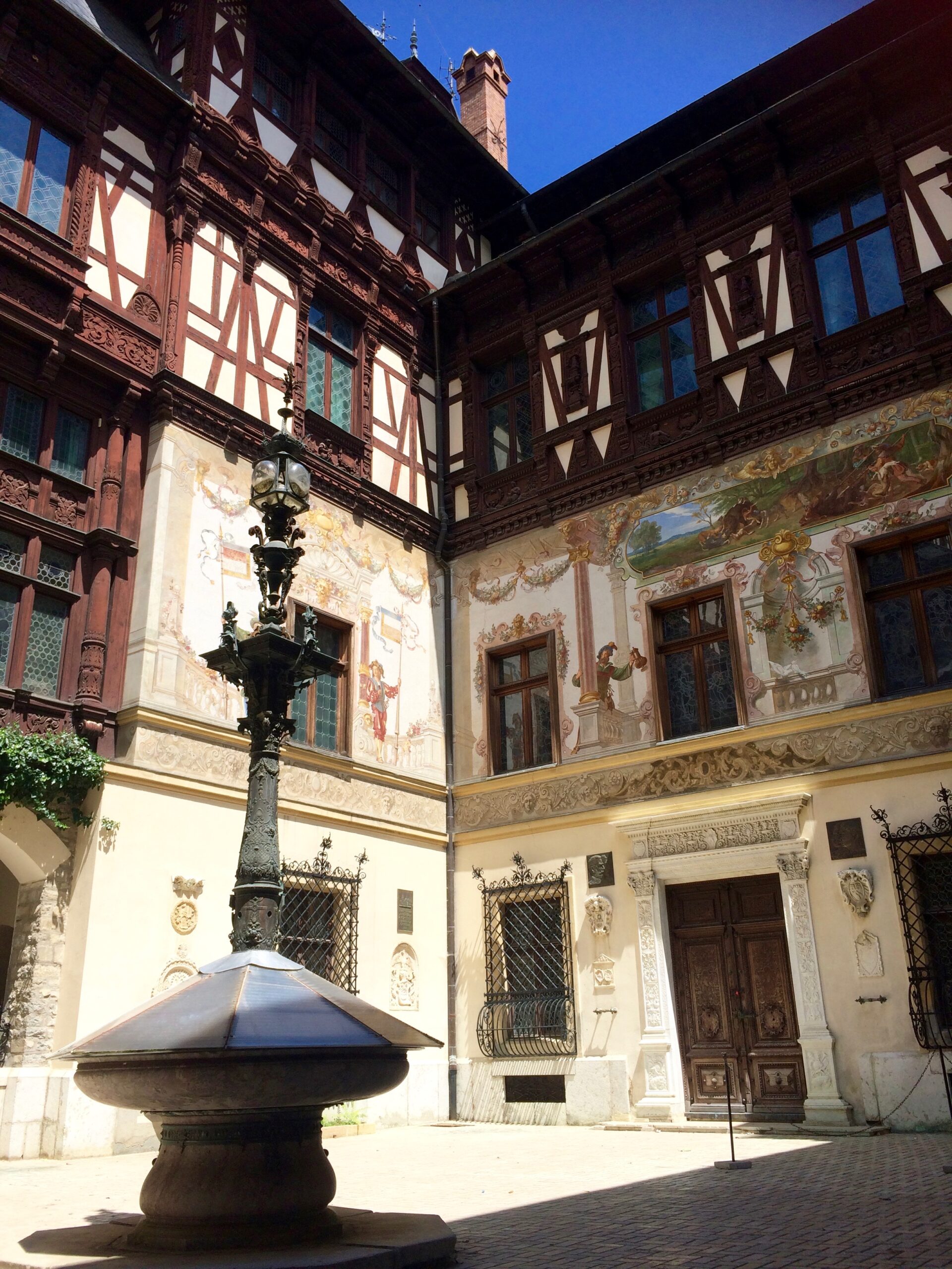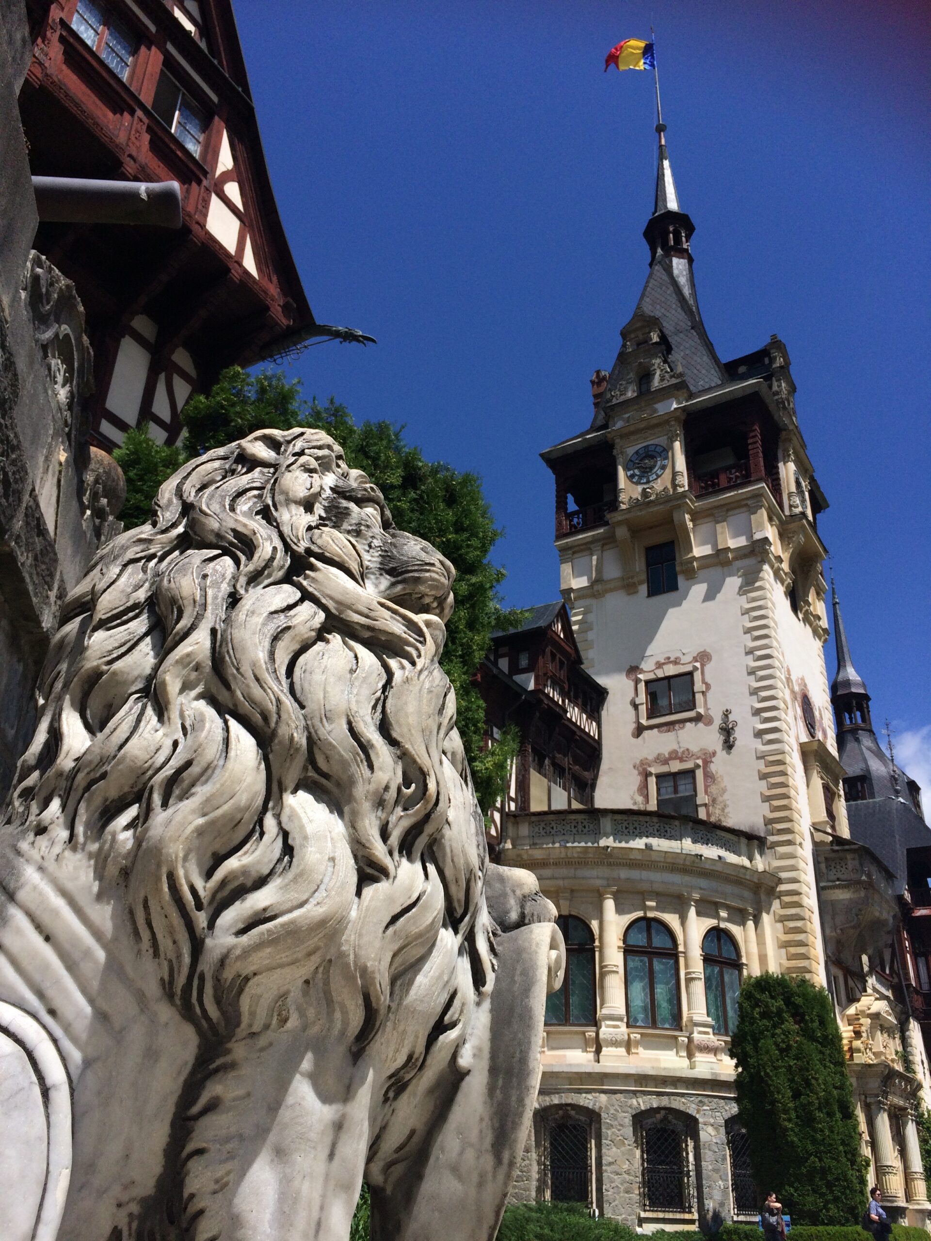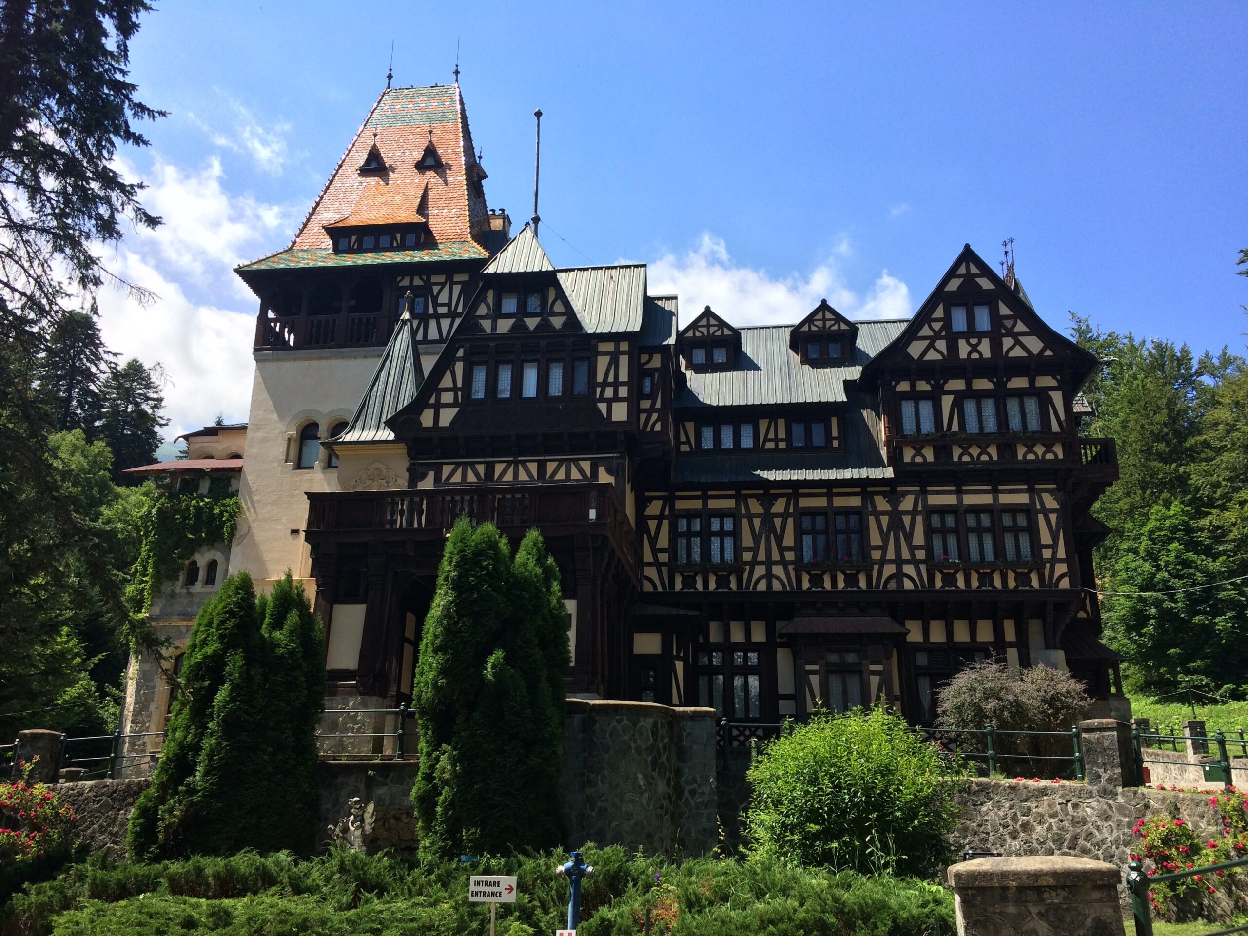 Our first stop was Peles Castle in the small town of Sinaia; I had read reviews that visiting this castle would be more favorable than visiting the touristy, famous Bran Castle (aka Dracula’s Castle). Plenty of free parking lined the streets, and it was a pleasant 1 km walk up a short hill to the postcard perfect site of Peles Castle. We planned on strolling around the castle because I knew that was free (as opposed to paying to enter the castle), but because it was a Monday, the castle was closed and devoid of tour groups which made it the perfect, peaceful visit to a castle.IMG_4126