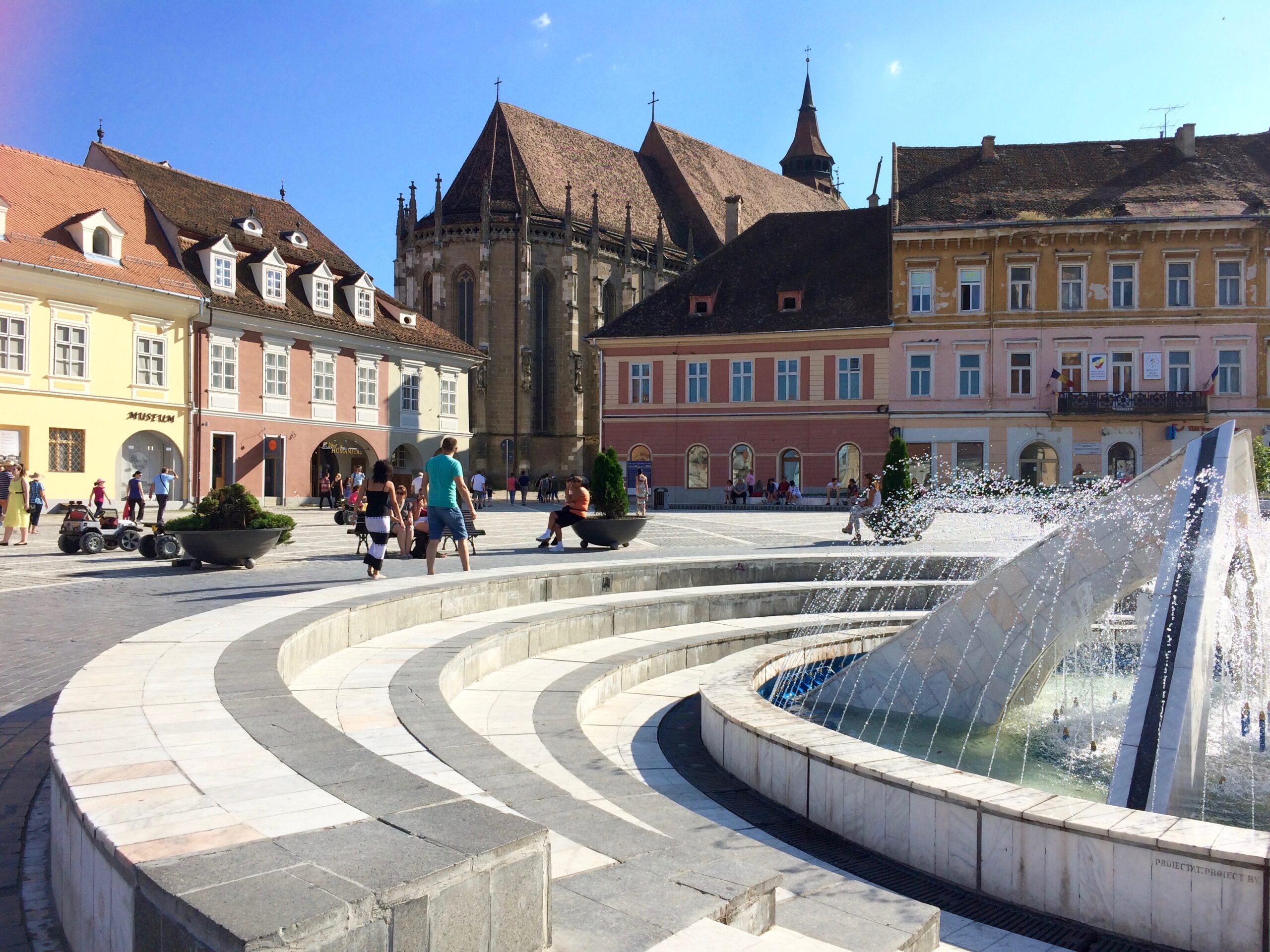 I can’t explain why I found Brasov’s main square to be charmingly breathtaking.  At this point in our trip we’ve seen too many main squares in cities and towns, all which were too highly reviewed by overenthusiastic tourists.  With the combination of the lovely architecture, adorable pastel colors, pretty fountains, airy space, lack of tourists and touts, extremely affordable eateries, and perfect summer weather, it would have been impossible to have a quick glance and move on from the square.IMG_20160712_174829