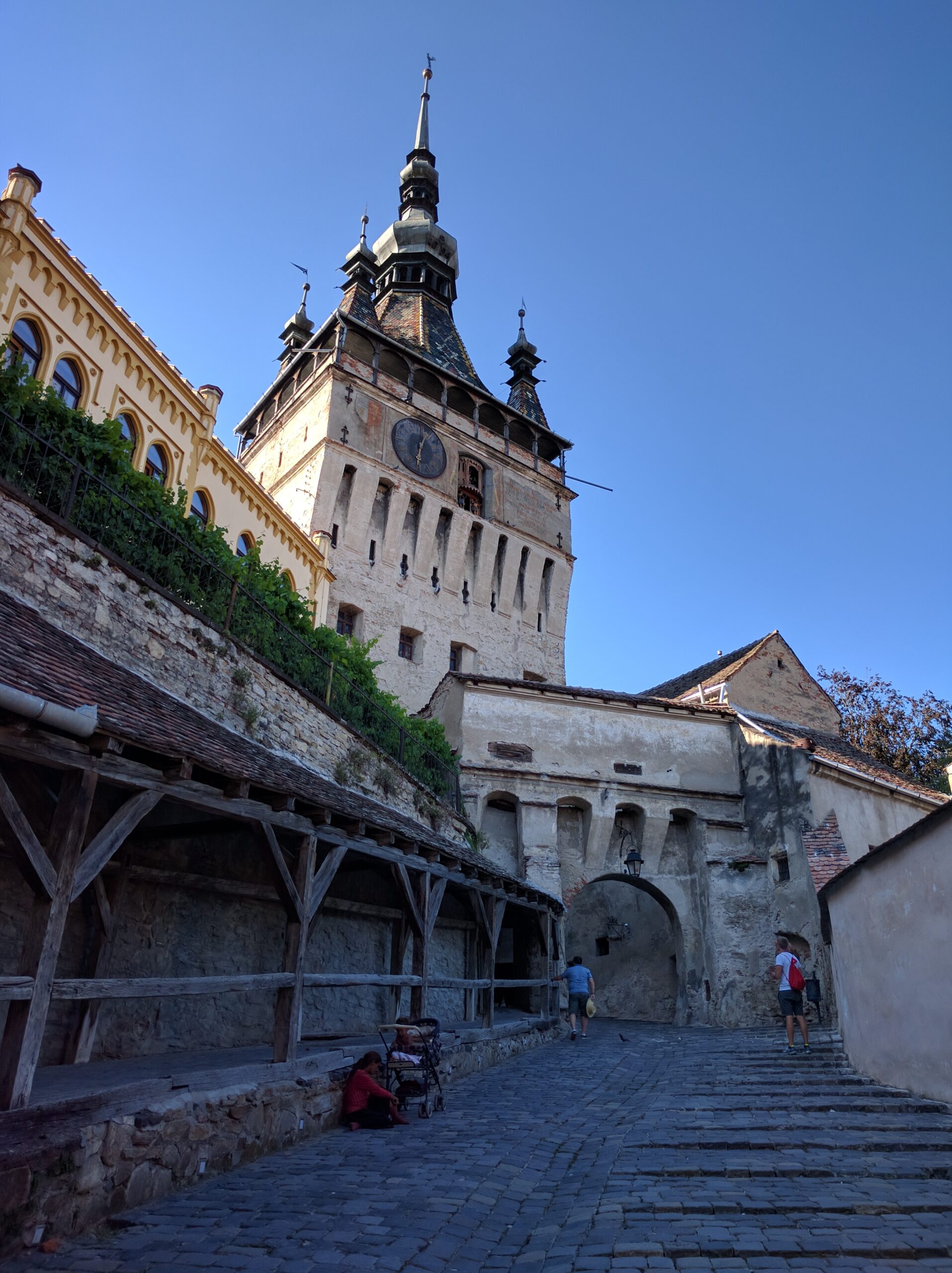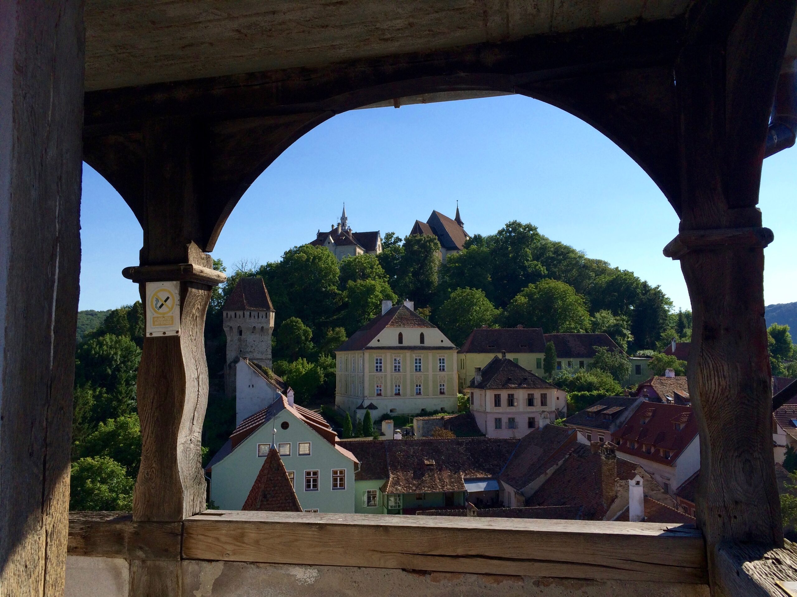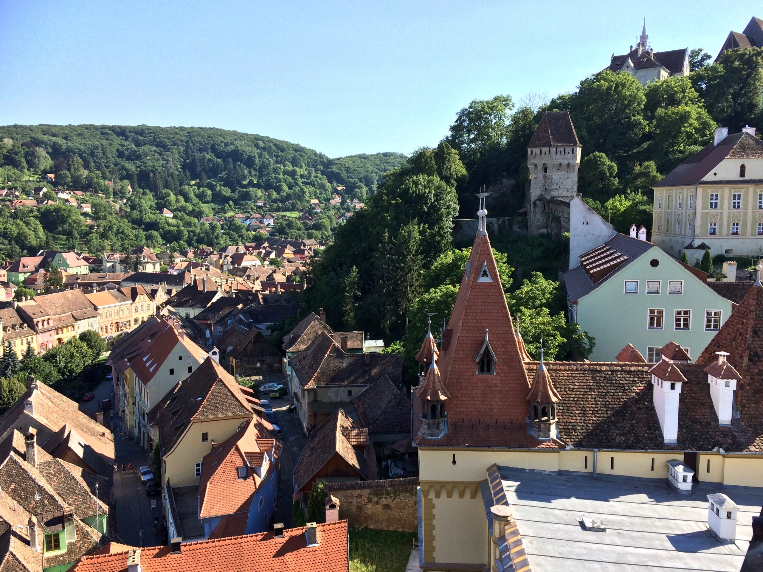 Sighisoara itself is a sizable town, but tourists come there primarily to see the old city. Fortunately parking along the residential streets wasn’t cumbersome, making it easy for us and the motorhome. We did however discover a massive parking lot at the foot of the old city that was free between 6pm and 7am. (Even when it was paid parking, it was only 1 lei or 25¢ per hour!) Because there were no signs banning overnight parking, we moved our motorhome to this lot and enjoyed a quiet evening with lovely views the next morning. =)