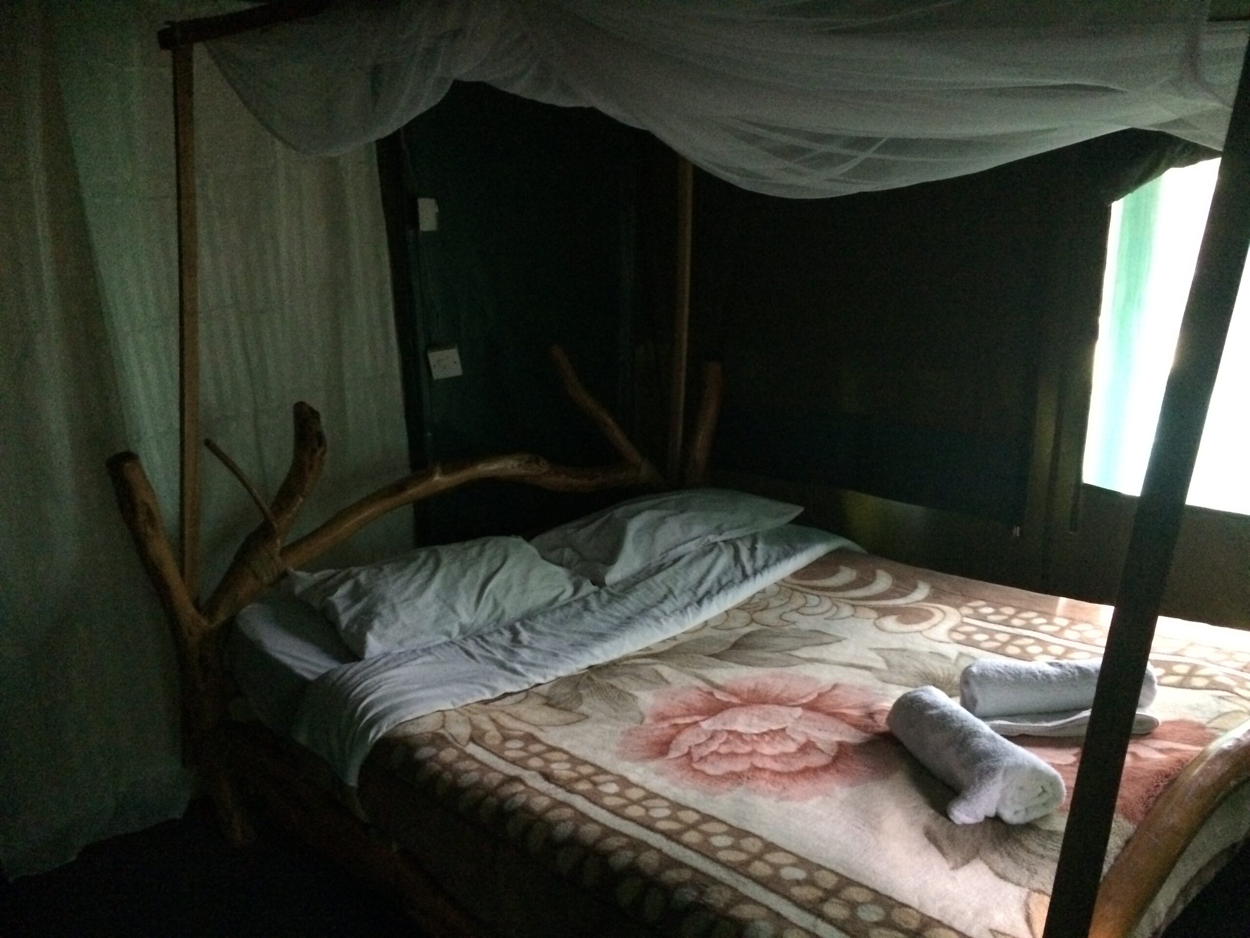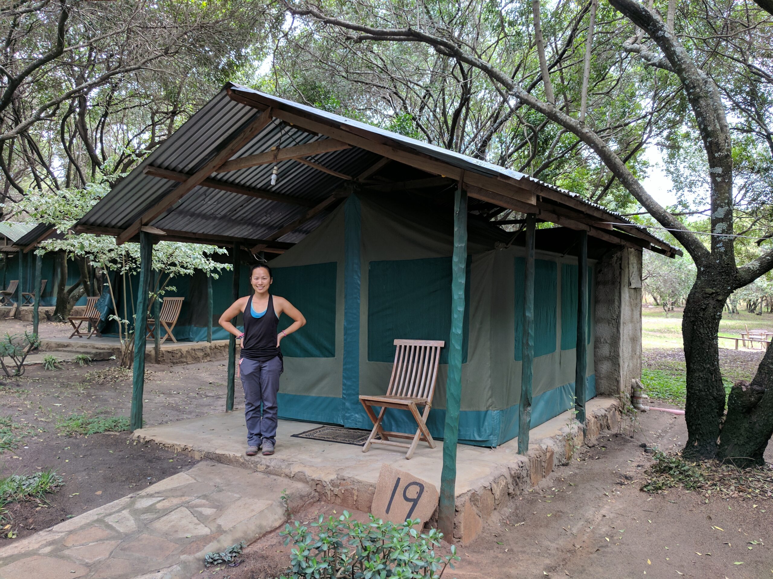 After a long drive through smooth pavement and rough roads, we finally made it to Mara Sidai Camp in time for a late lunch. People who prefer a more luxurious hotel would probably squirm at the camp’s safari tents, but I loved them! Because of the word “camp” I had actually pictured a wilderness camping tent, sleeping bags, and shared bath. Nope. This was glamping. Each tent not only had a large, comfy bed, they also came with a private bathroom with a hot shower! This even might have been a step up from my own room while volunteering in Kenya…