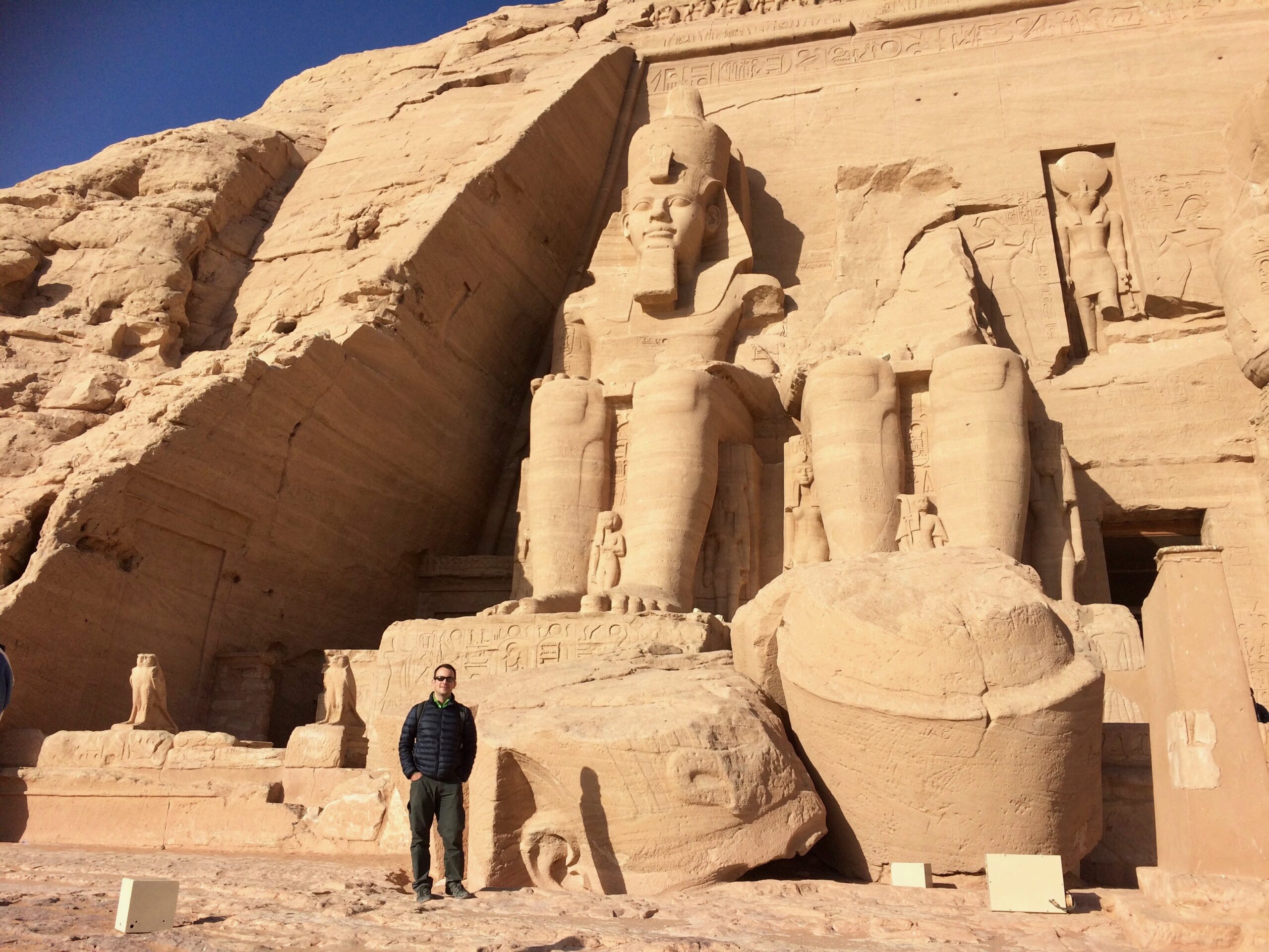 The cheapest way to get there is to book a last minute excursion from a budget hotel in Aswan. At the time in December 2016 we paid 160 LE each (~$9) for a packed breakfast and transportation to and from Aswan in a shared minivan–sure beats the $30 per person that cruises charge when booking the same exact journey! Unfortunately all itineraries are identical: a cringeworthy pick-up between 3-3:30am, a 3-hour ride to Abu Simbel, 2 hours to spectate the temples, and a 3-hour ride back. It is cheap, long, and tiring, but absolutely worth the effort.